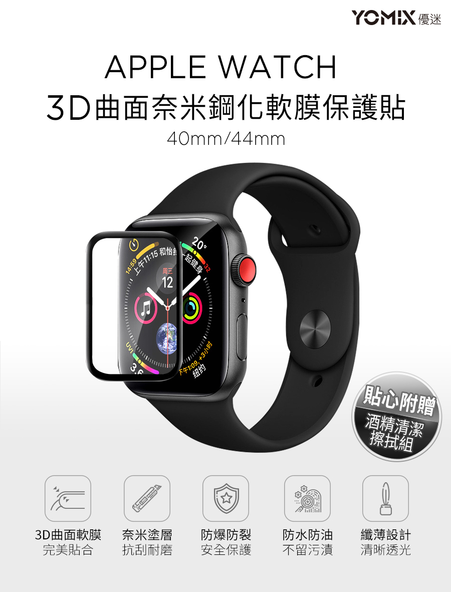 【YOMIX優迷】Apple Watch 曲面滿版鋼化玻璃保護貼(40mm/44mm)