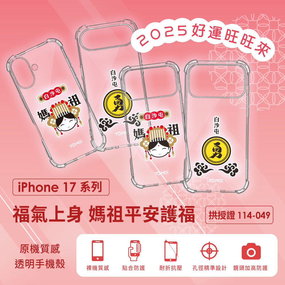 【YOMIX優迷】白沙屯媽祖聯名iPhone 17 Pro空壓氣墊透明防摔保護殼