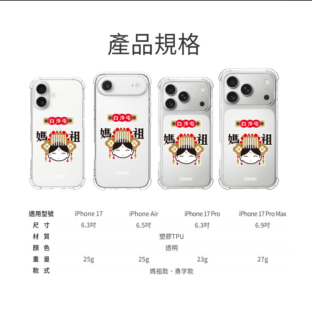 【YOMIX優迷】白沙屯媽祖聯名iPhone 17 Pro Max空壓氣墊透明防摔保護殼