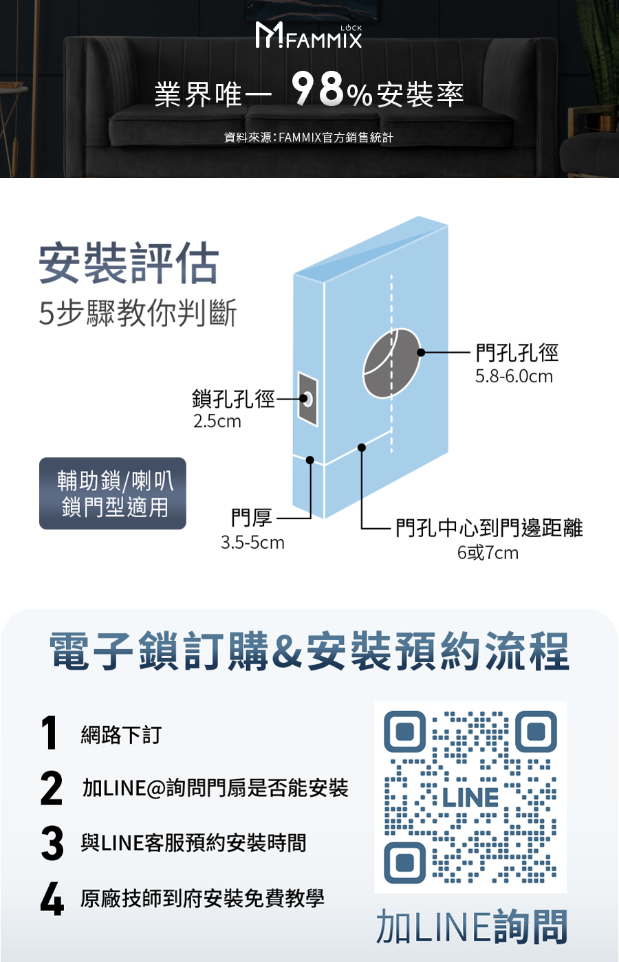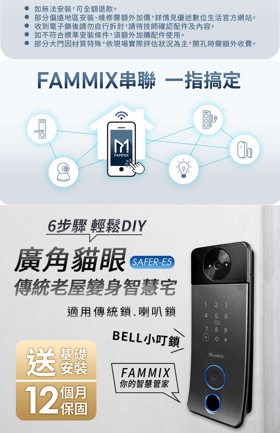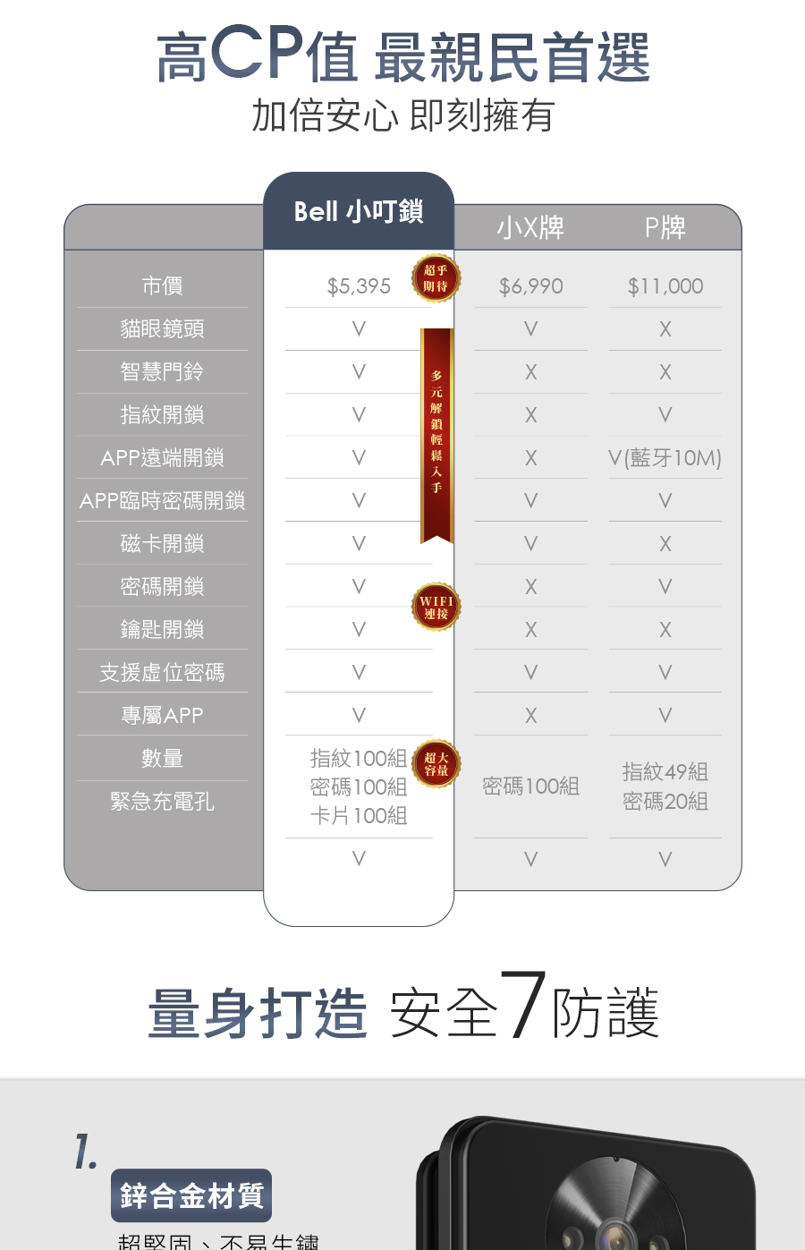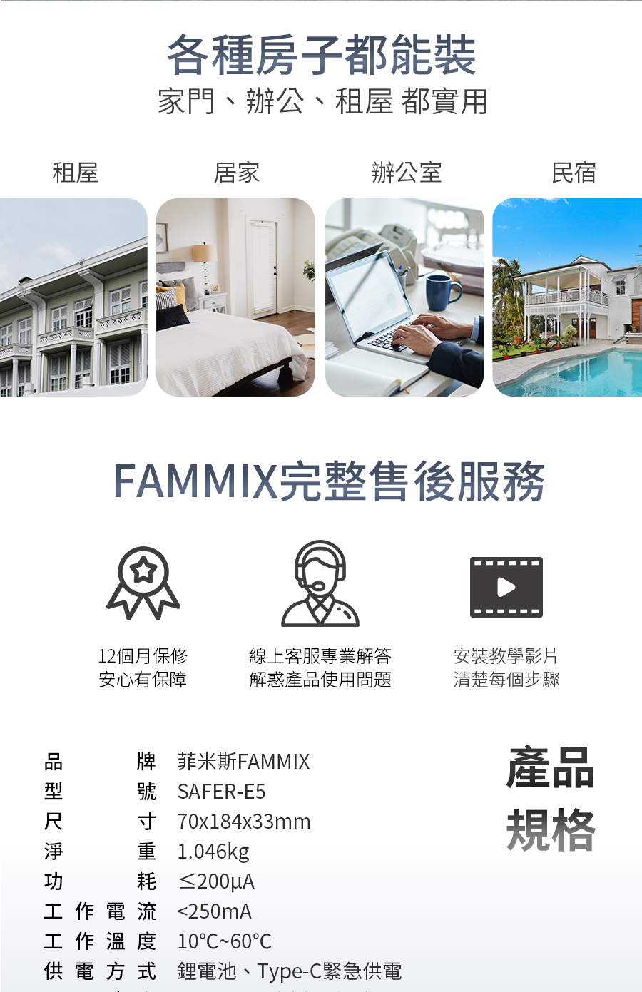 *6大開鎖方式: 指紋 / 密碼 / 感應卡 / 鑰匙 / APP遠程解鎖 / 臨時密碼