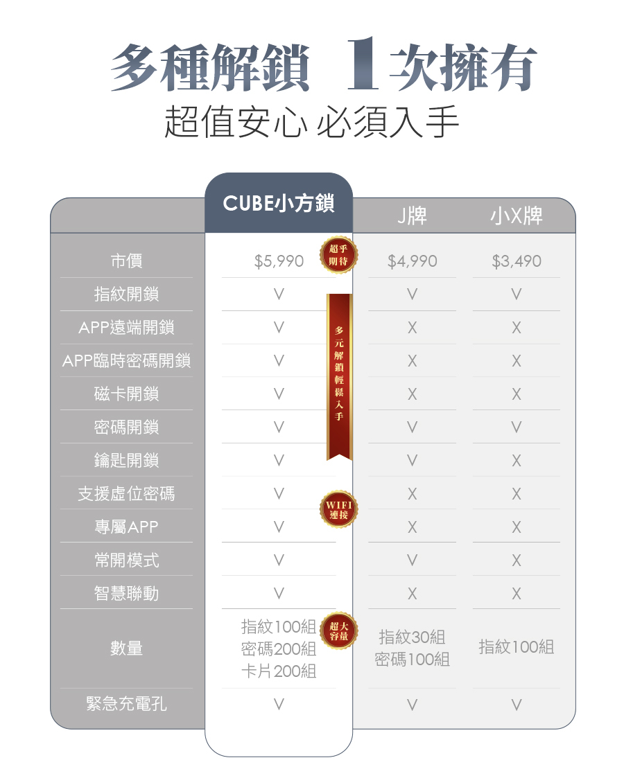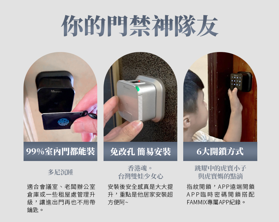 華米會員專屬【FAMMIX菲米斯】CUBE小方鎖 六合一智慧室內Wi-Fi電子鎖(指紋/密碼/鑰匙/磁卡/簡易DIY安裝/適用喇叭鎖)
