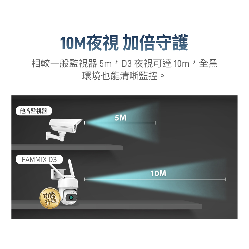【FAMMIX 菲米斯】可旋轉全彩夜視戶外警報Wi-Fi攝影機/監視器D3