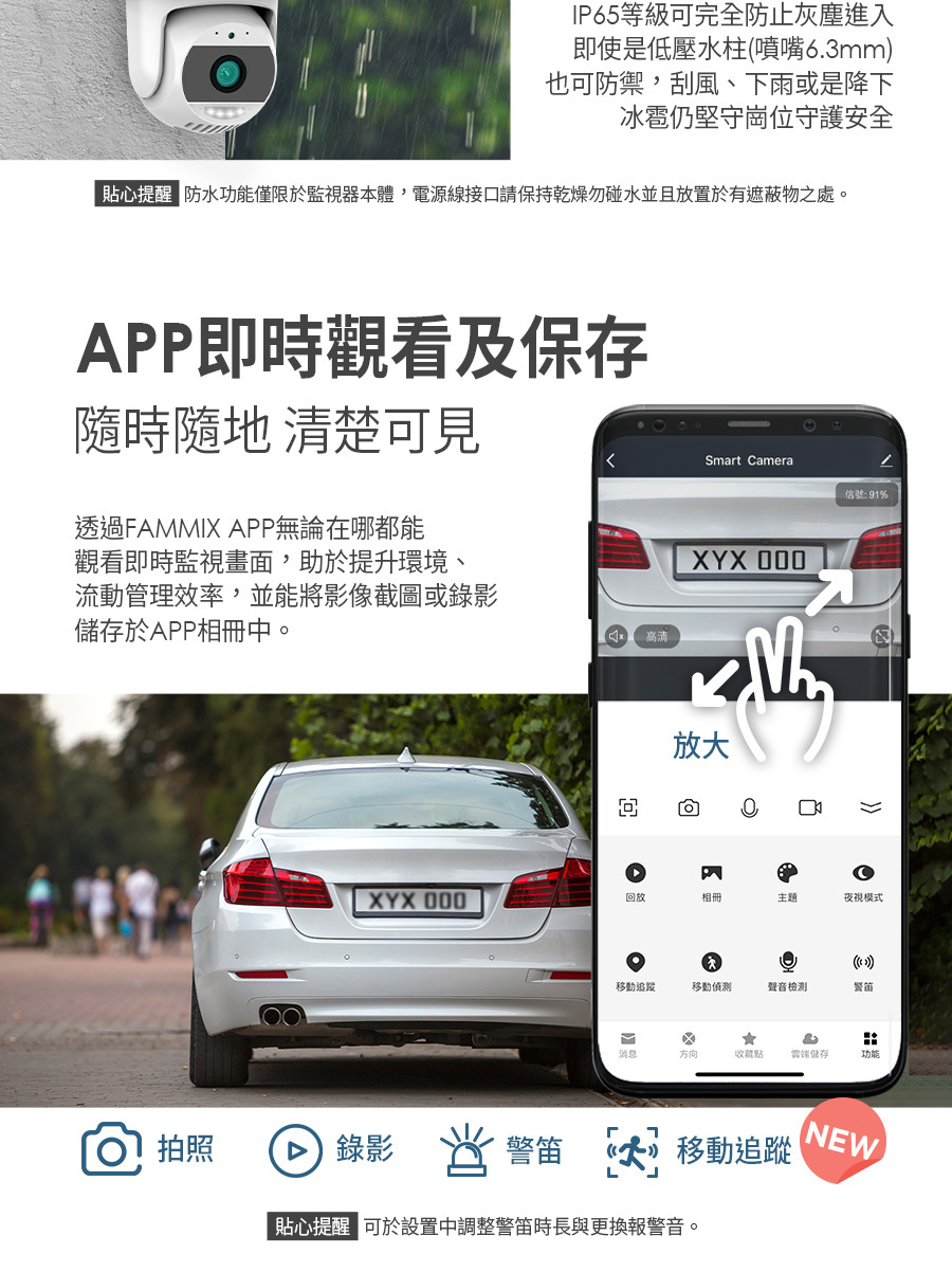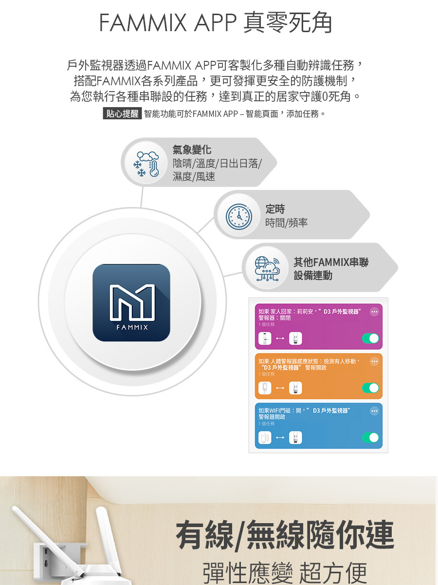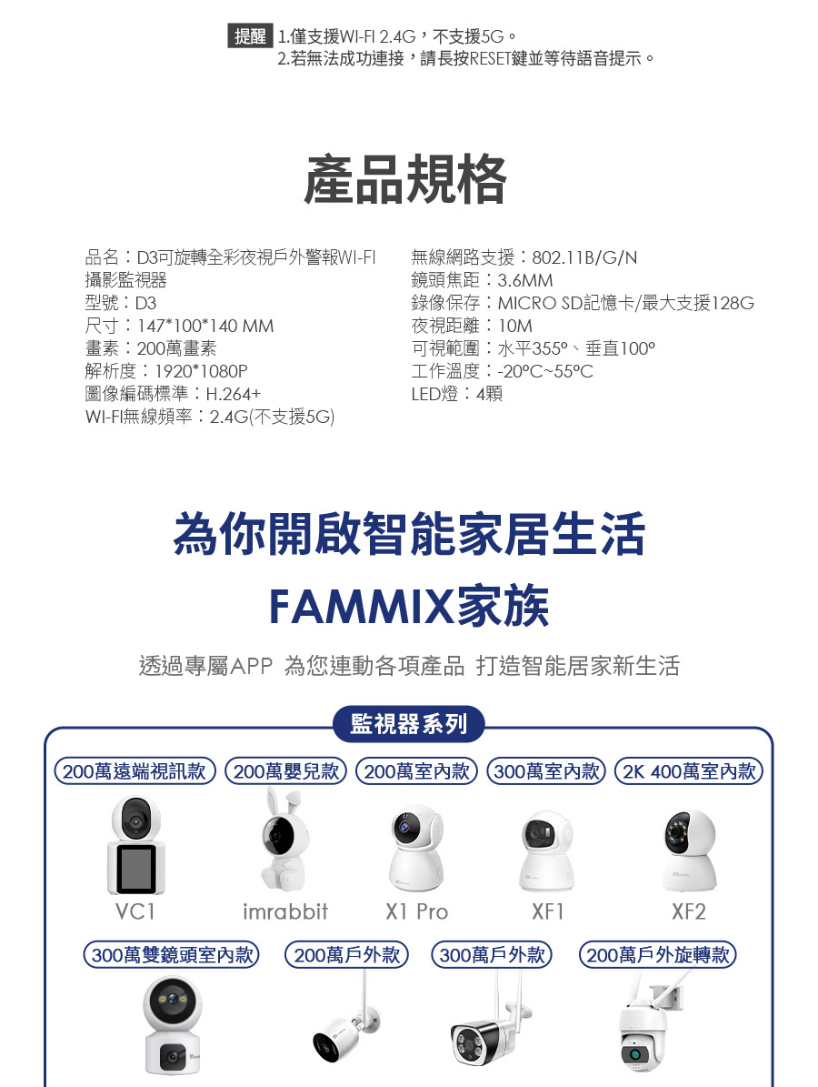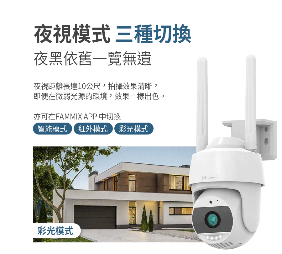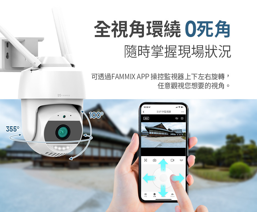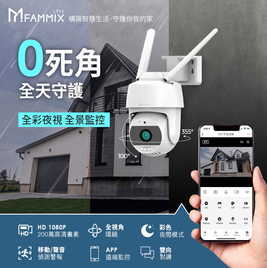 建材展專用現場取貨(一般客勿下單)【FAMMIX 菲米斯】可旋轉全彩夜視戶外警報Wi-Fi攝影機/監視器D3