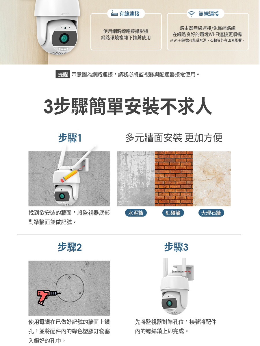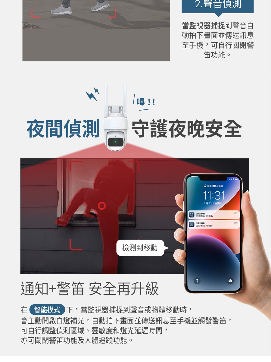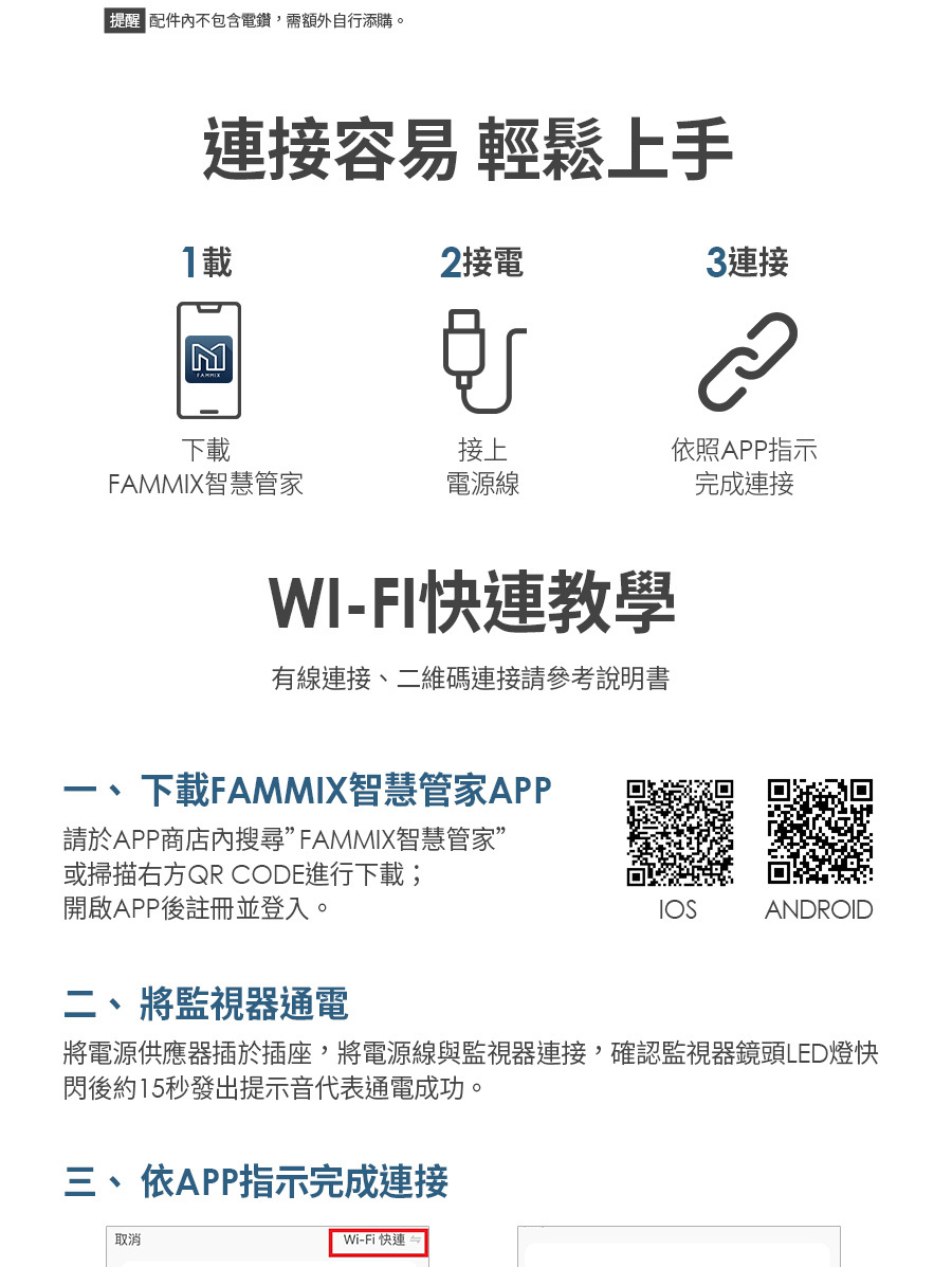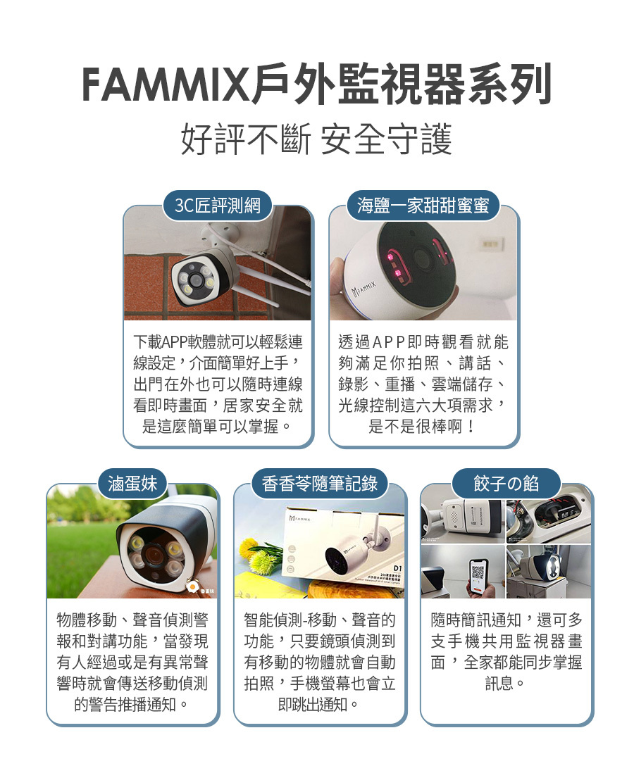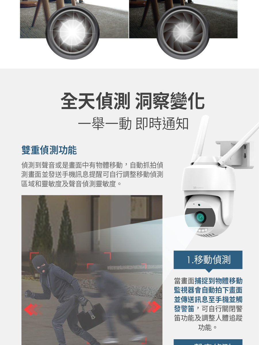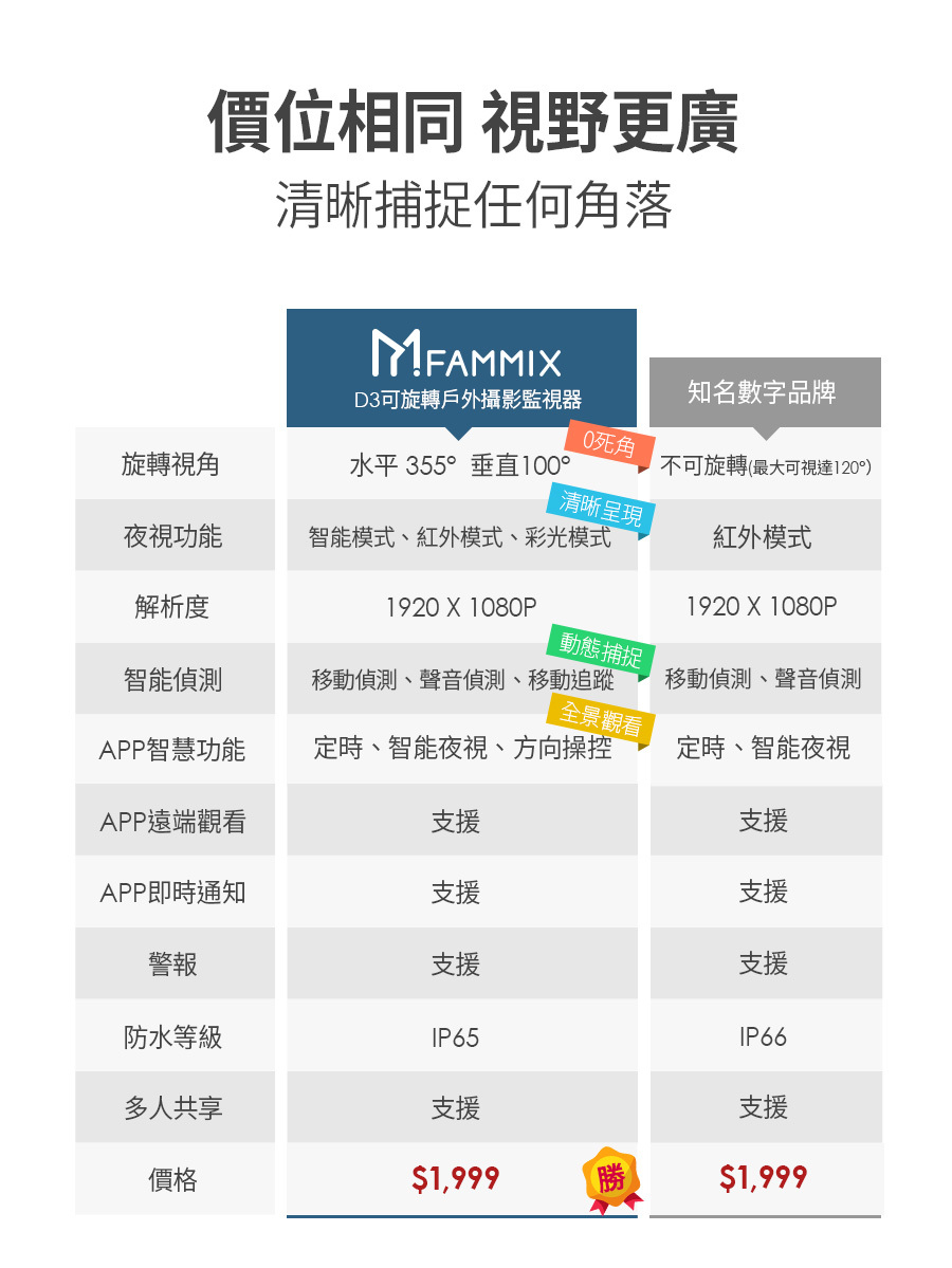 建材展專用現場取貨(一般客勿下單)【FAMMIX 菲米斯】可旋轉全彩夜視戶外警報Wi-Fi攝影機/監視器D3