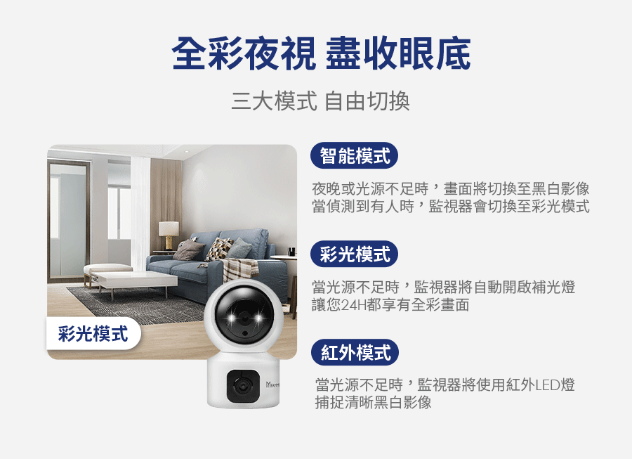 全彩夜視-智能 | 夜視 | 彩光三大模式