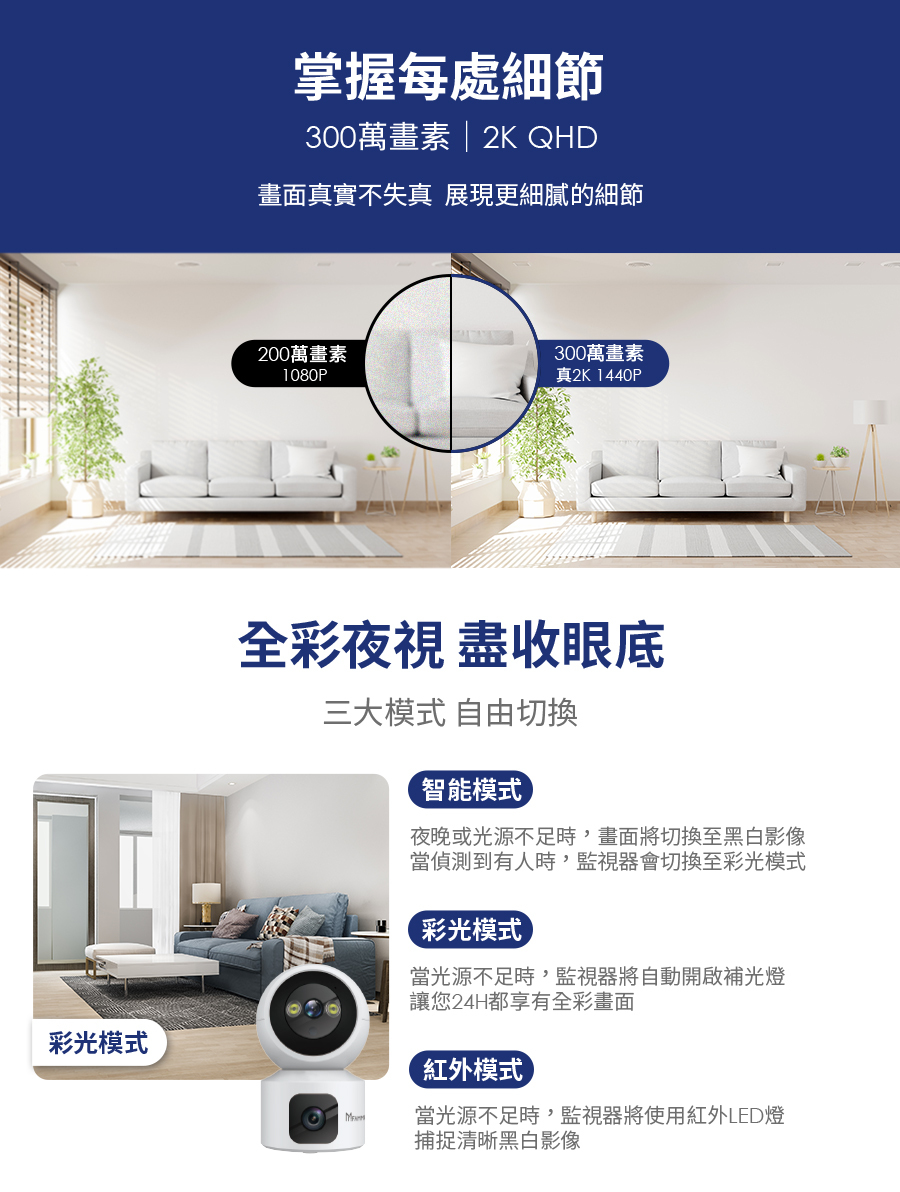 全彩夜視-智能 | 夜視 | 彩光三大模式