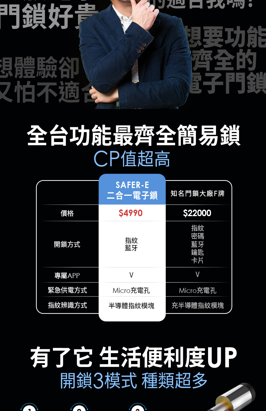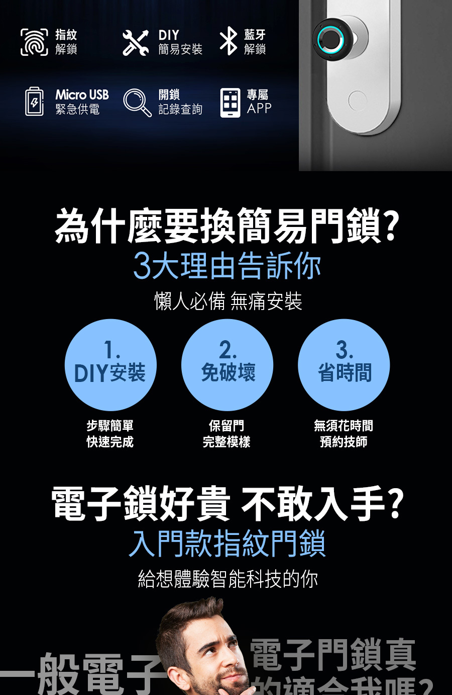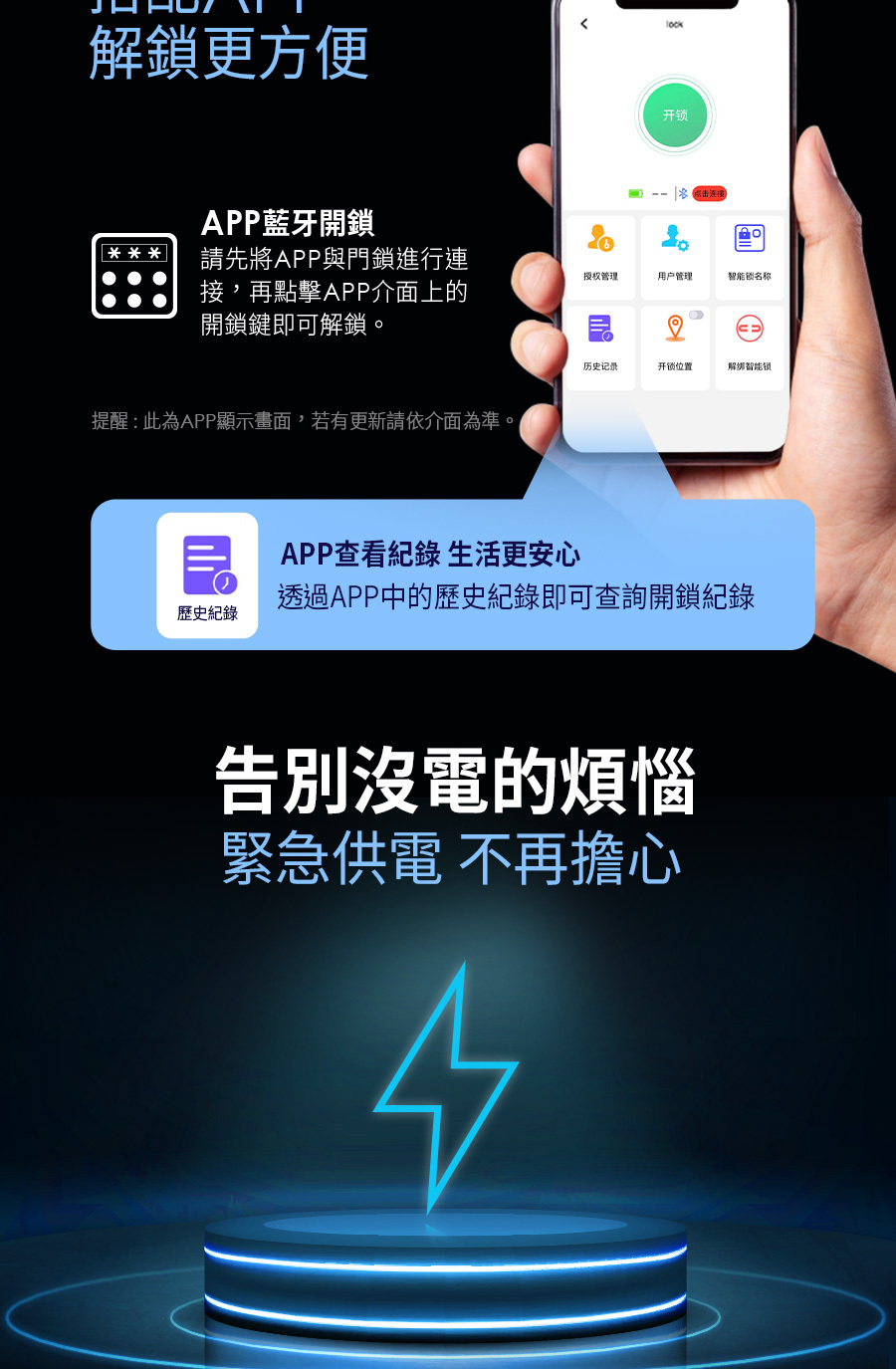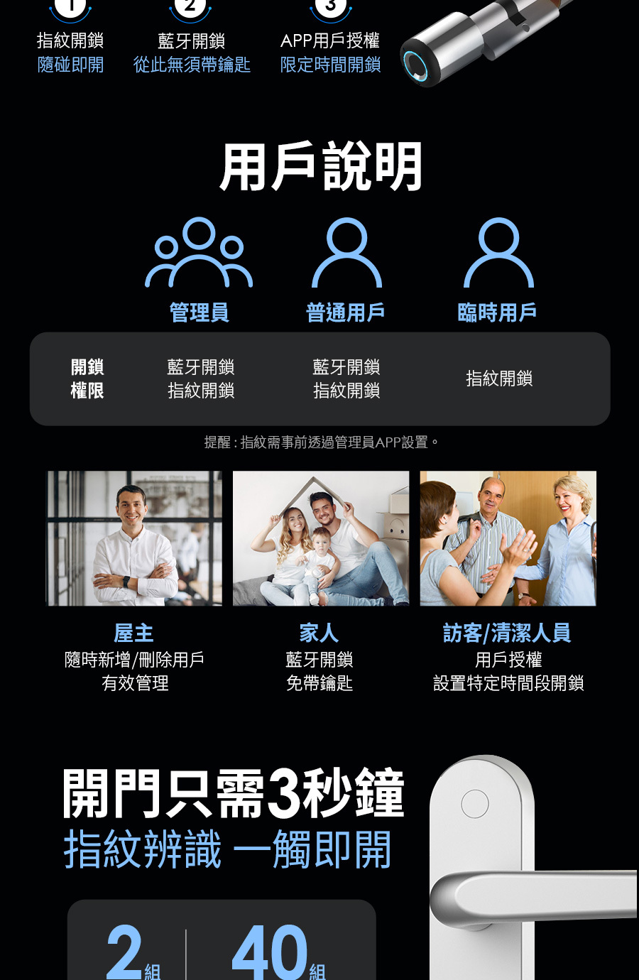 指紋開鎖 3秒進家門,搭配專屬APP 無須帶鑰匙,多元開鎖方式