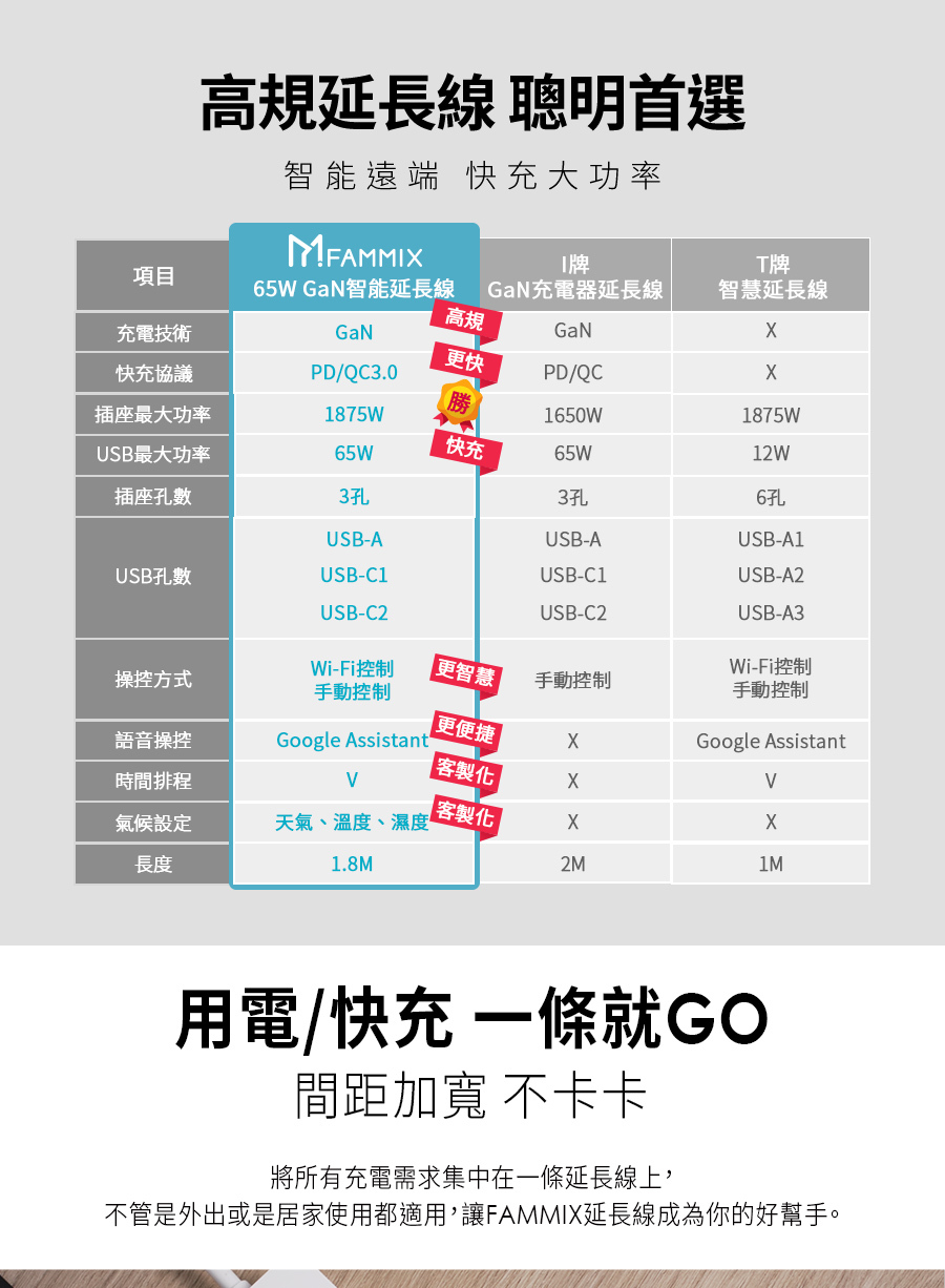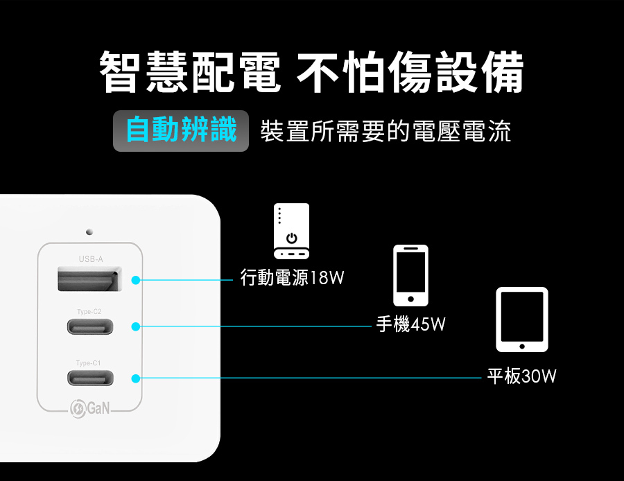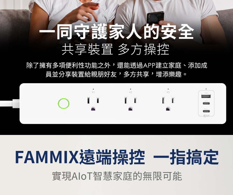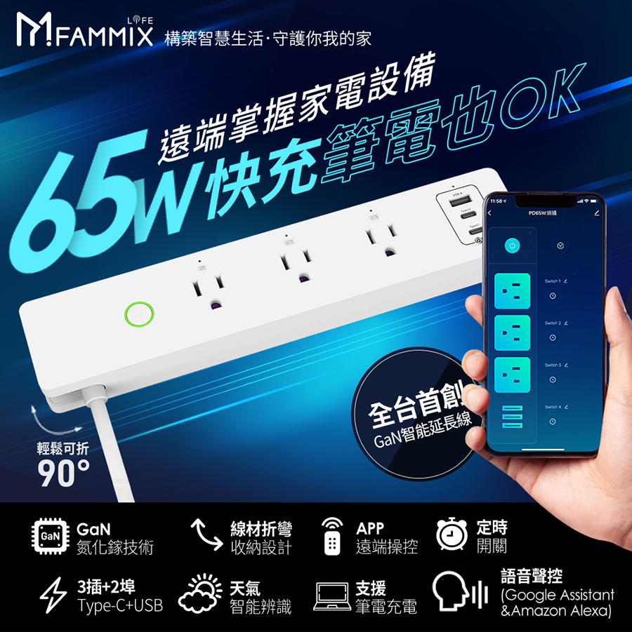 * 分控功能:排插共AC位3,1USB+2 TYPE C