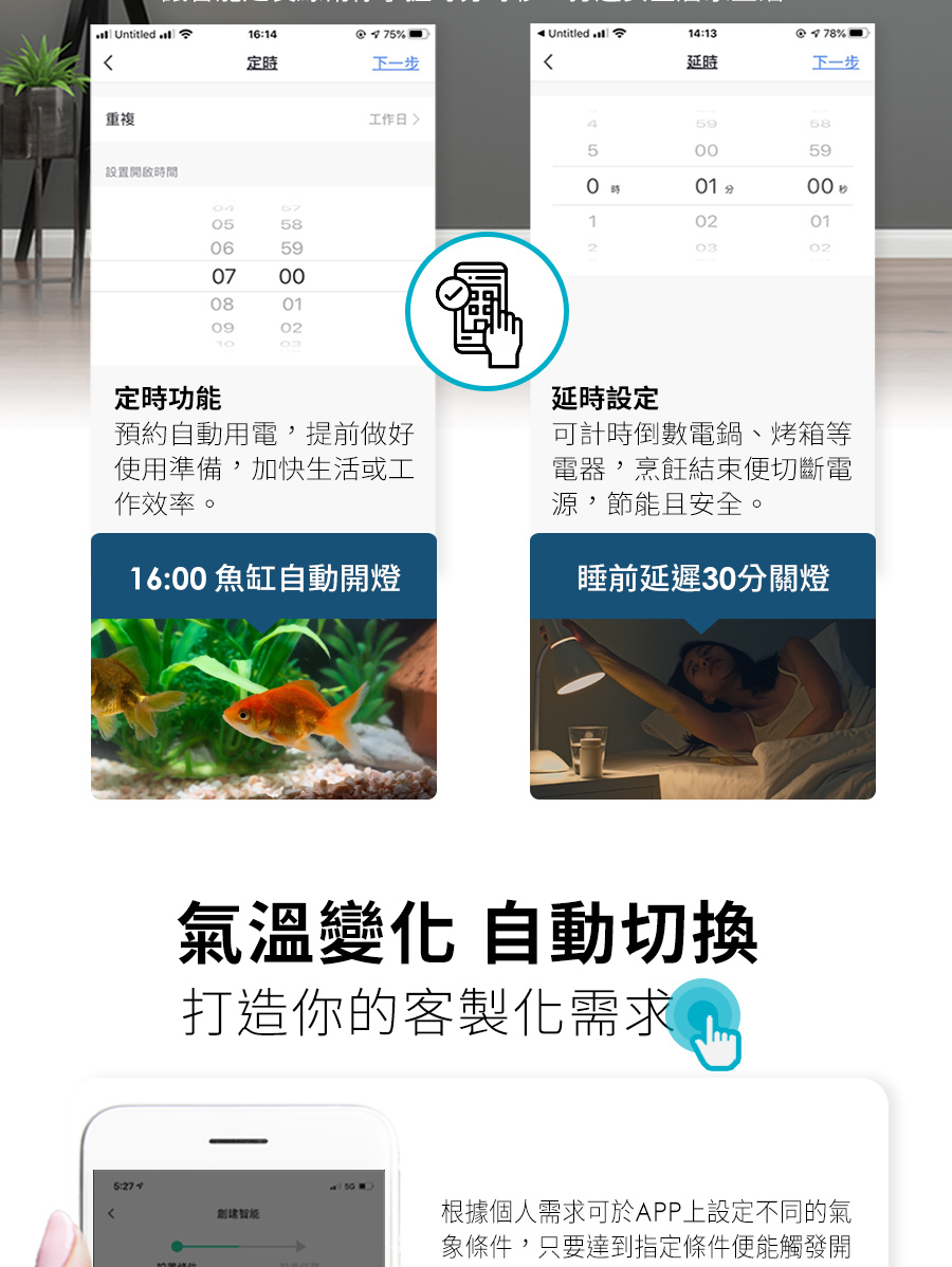 * 手動開關:通過按一下排插上的開關按鍵迴圈切換開/關狀態。