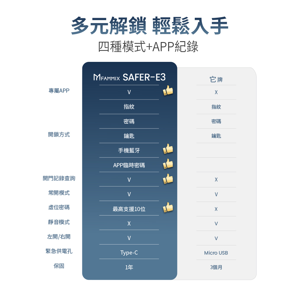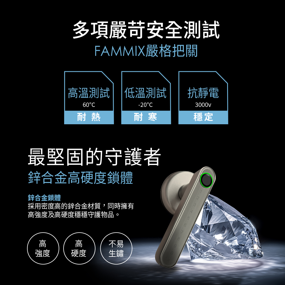 【FAMMIX 菲米斯】四合一智慧指紋室內電子鎖SAFER-E3(50組指紋/藍牙/密碼/鑰匙)