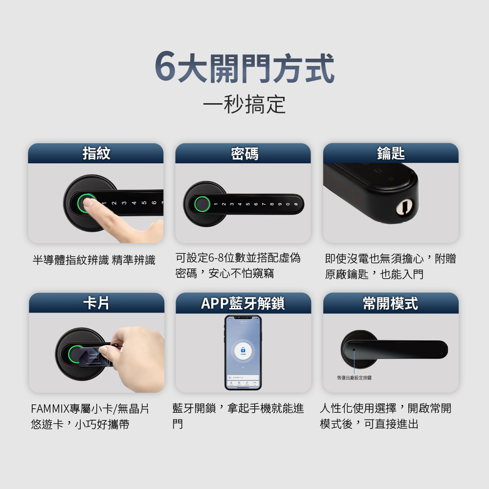 (指紋、密碼、藍牙、鑰匙)