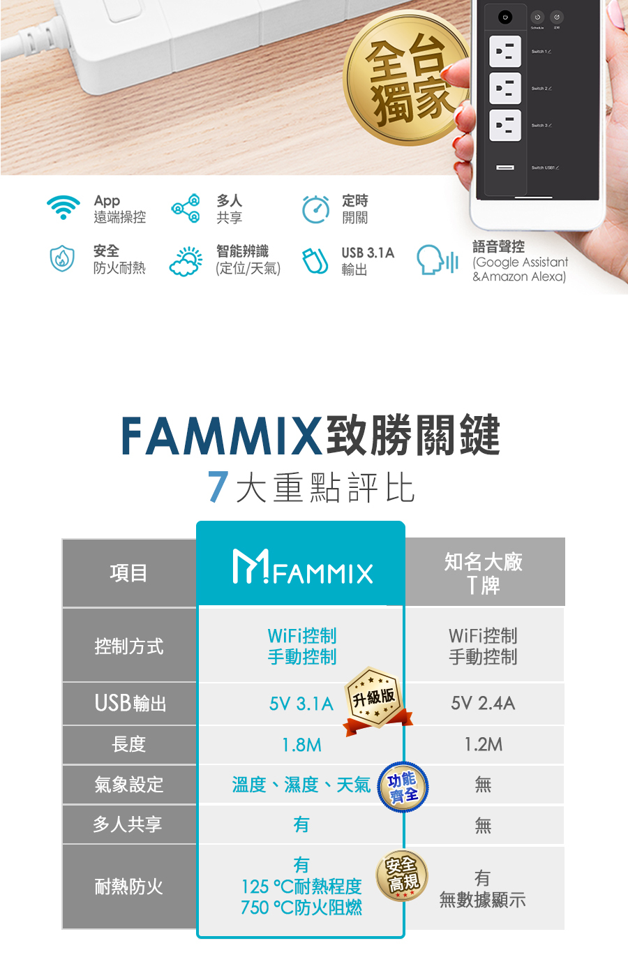 居家必備 Wi-Fi智能延長線,24H APP遠端操控,貼心定時定位開關,USB 3.1A再升級