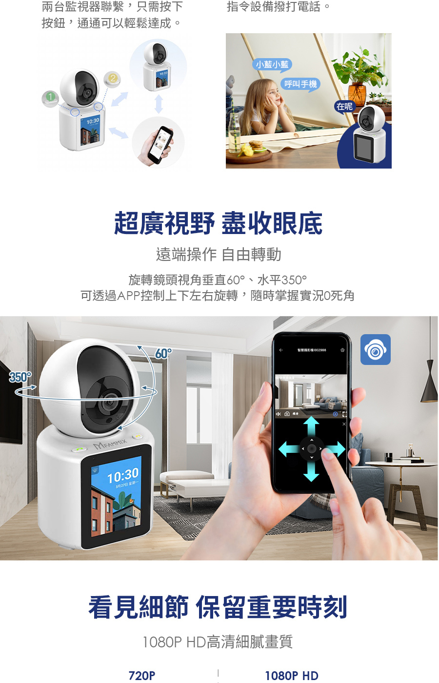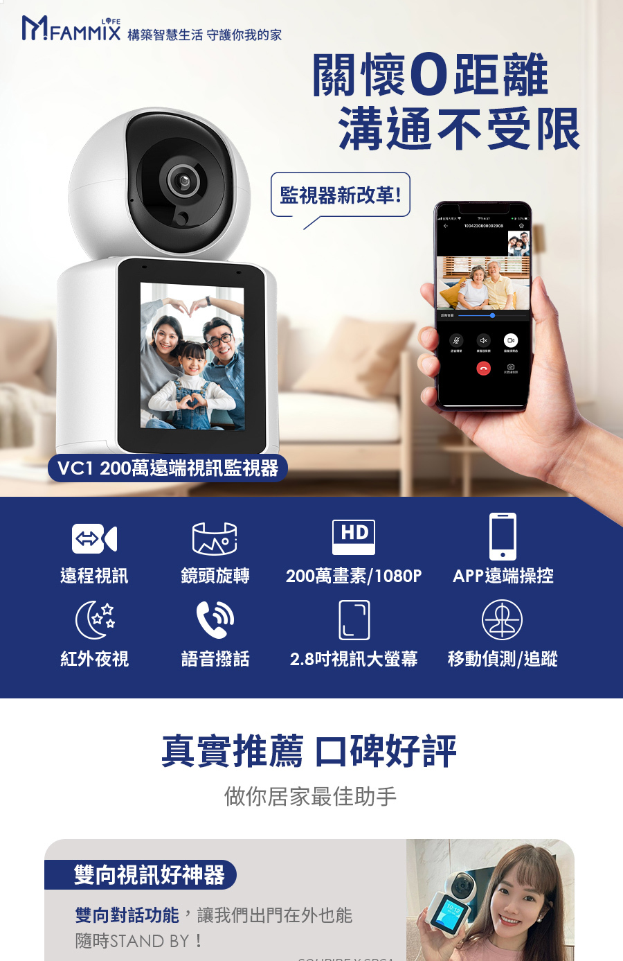 【FAMMIX 菲米斯】VC1 1080P雙機串聯雙向遠端視訊對講攝影機/監視器(老人照護/2.8吋大螢幕/200萬畫素)