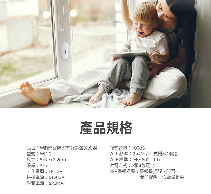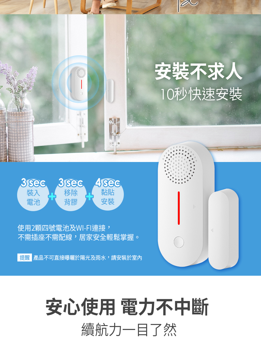 建材展專用現場取貨(一般客勿下單)【FAMMIX 菲米斯】Wi-Fi門窗防盜警報鈴聲感應器WD-2