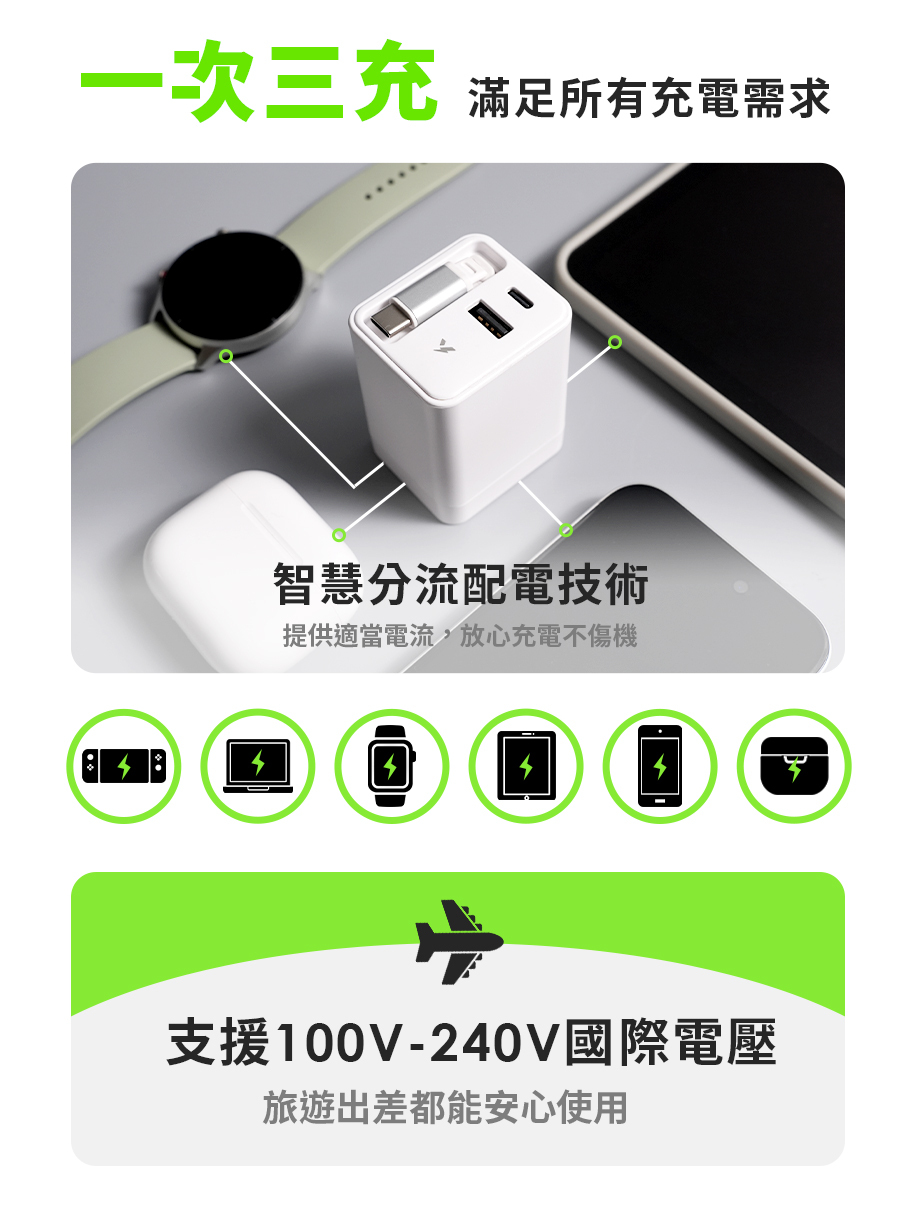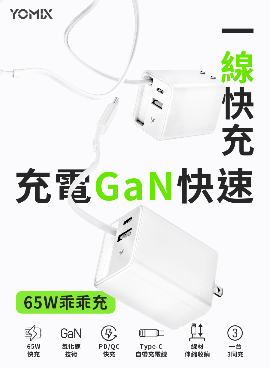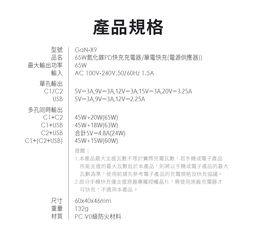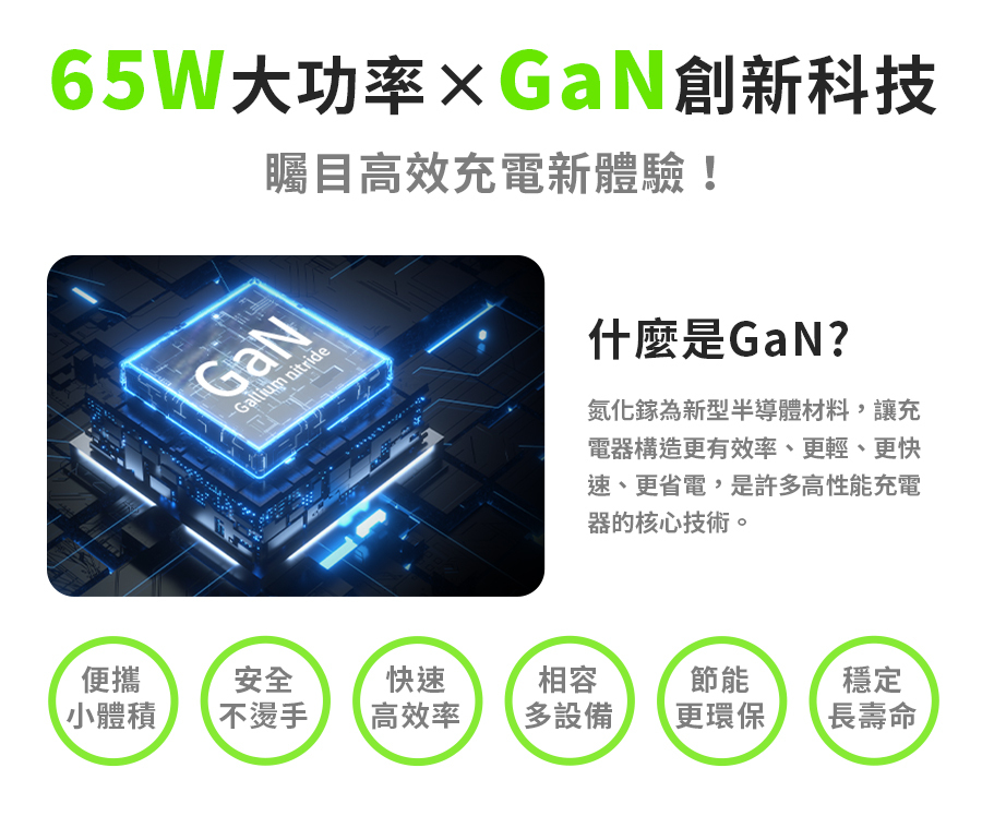 4.GaN氮化鎵黑科技加持,將65W強功率體積縮小至傳統充電器的30%