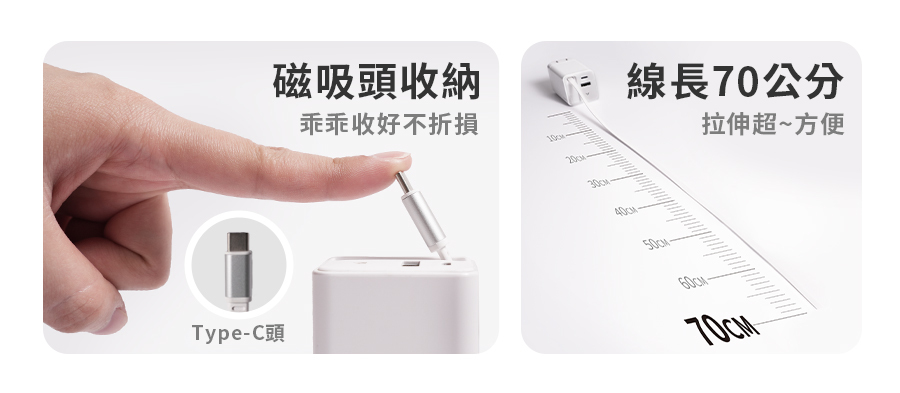 5.自帶Type-C充電線,忘記帶線材也能使用充電線充電