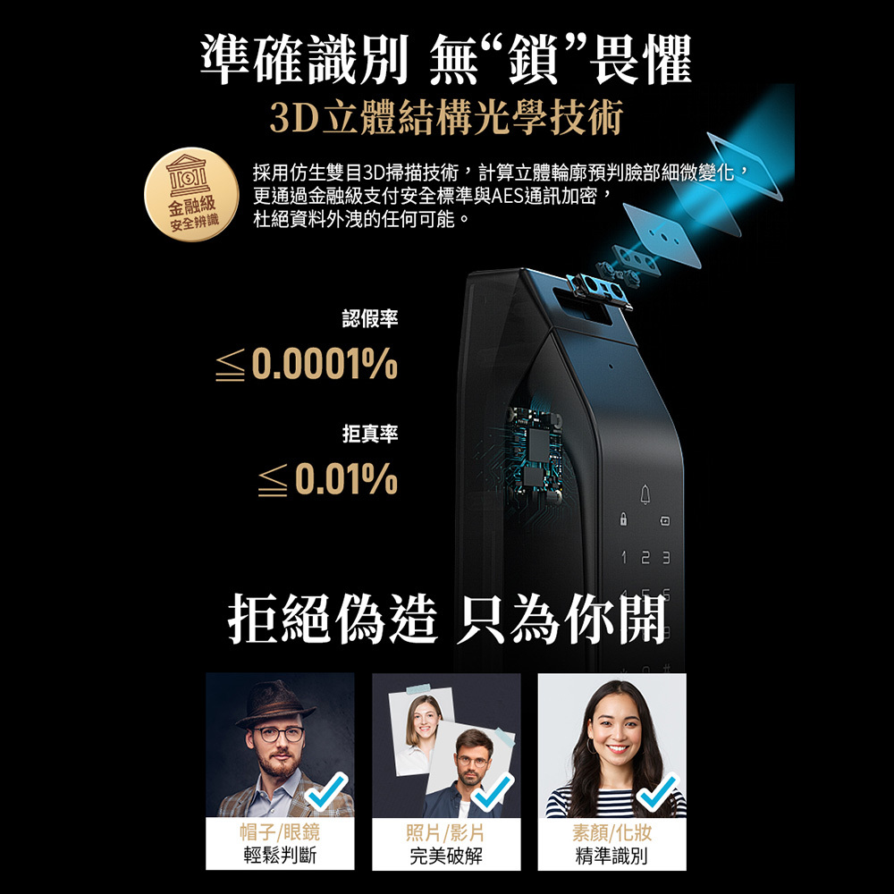 *3D紅外線,白天夜晚辨別臉部皆快速準確"