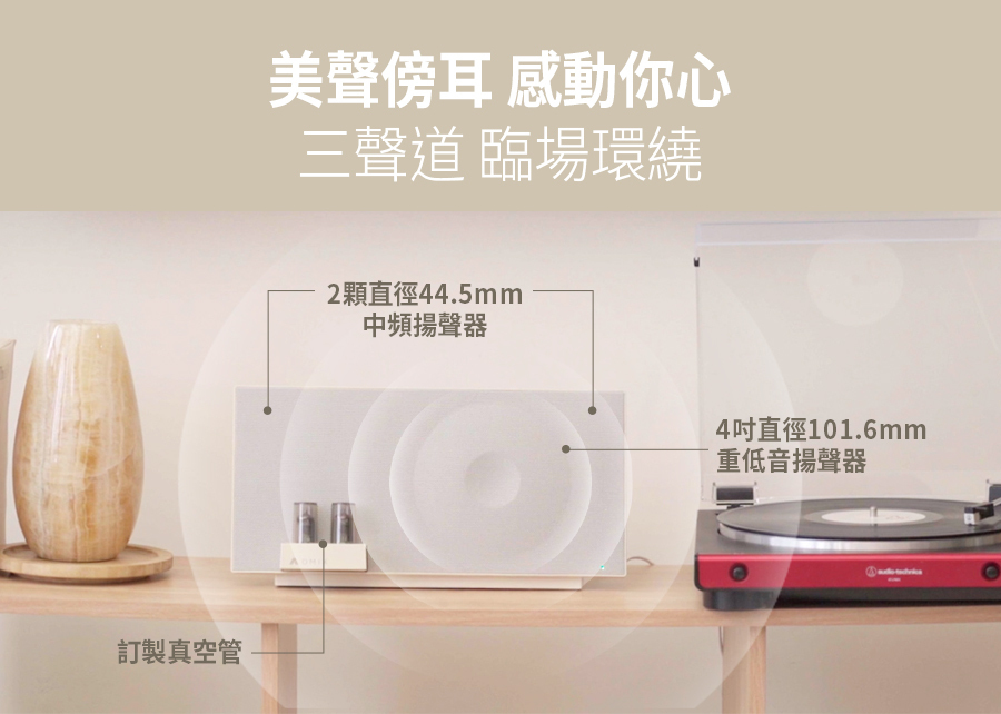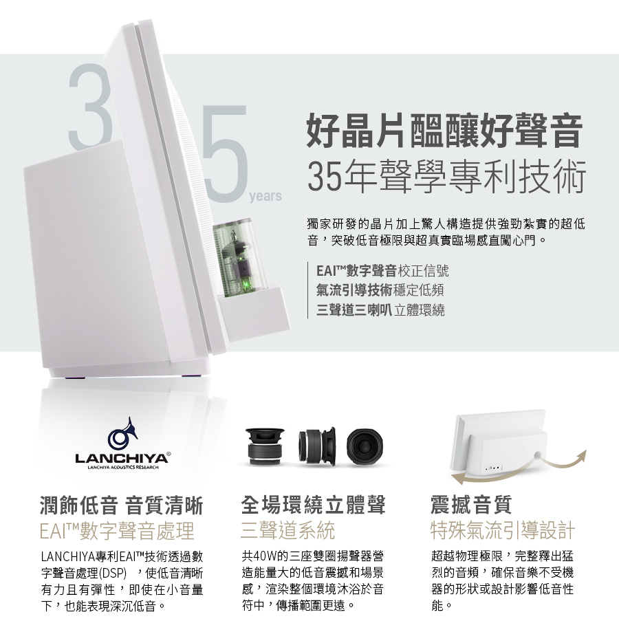 ●3聲道3喇叭音響系統,為聆聽體驗增添更加豐富的超低音震撼感和場景感。