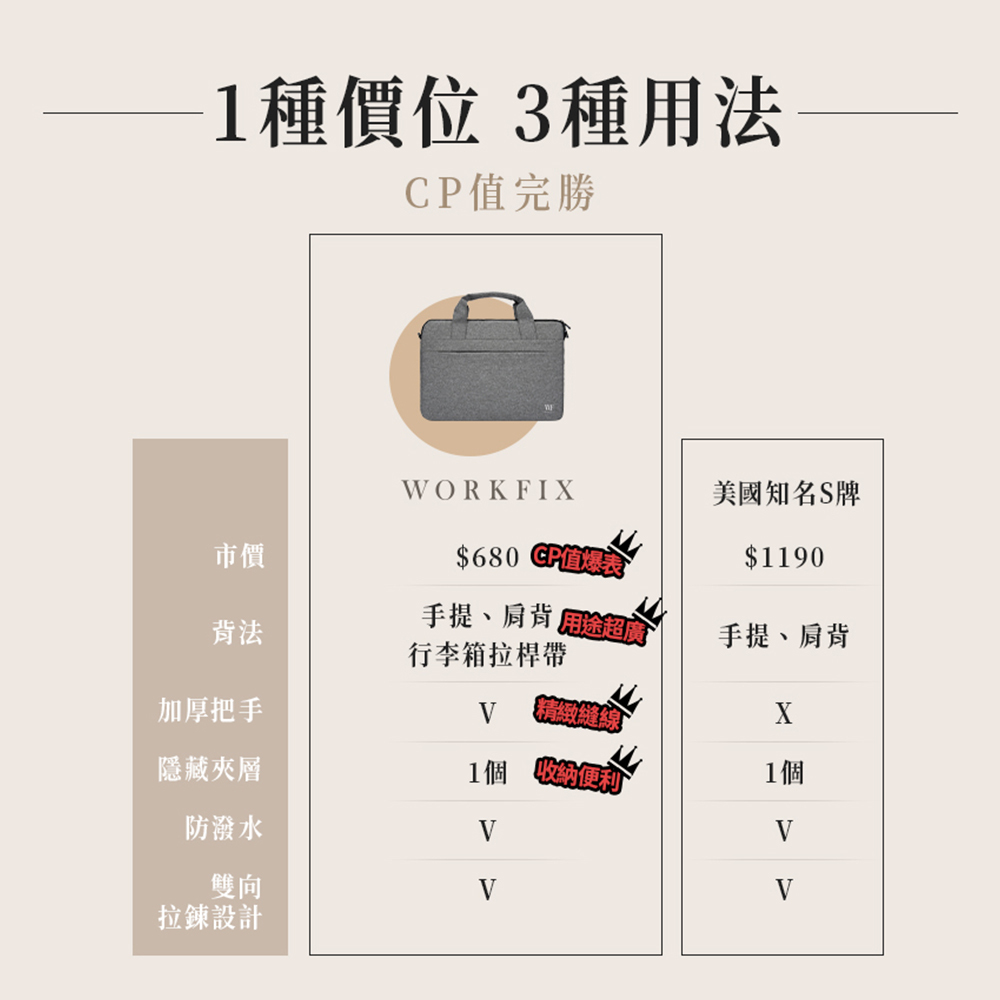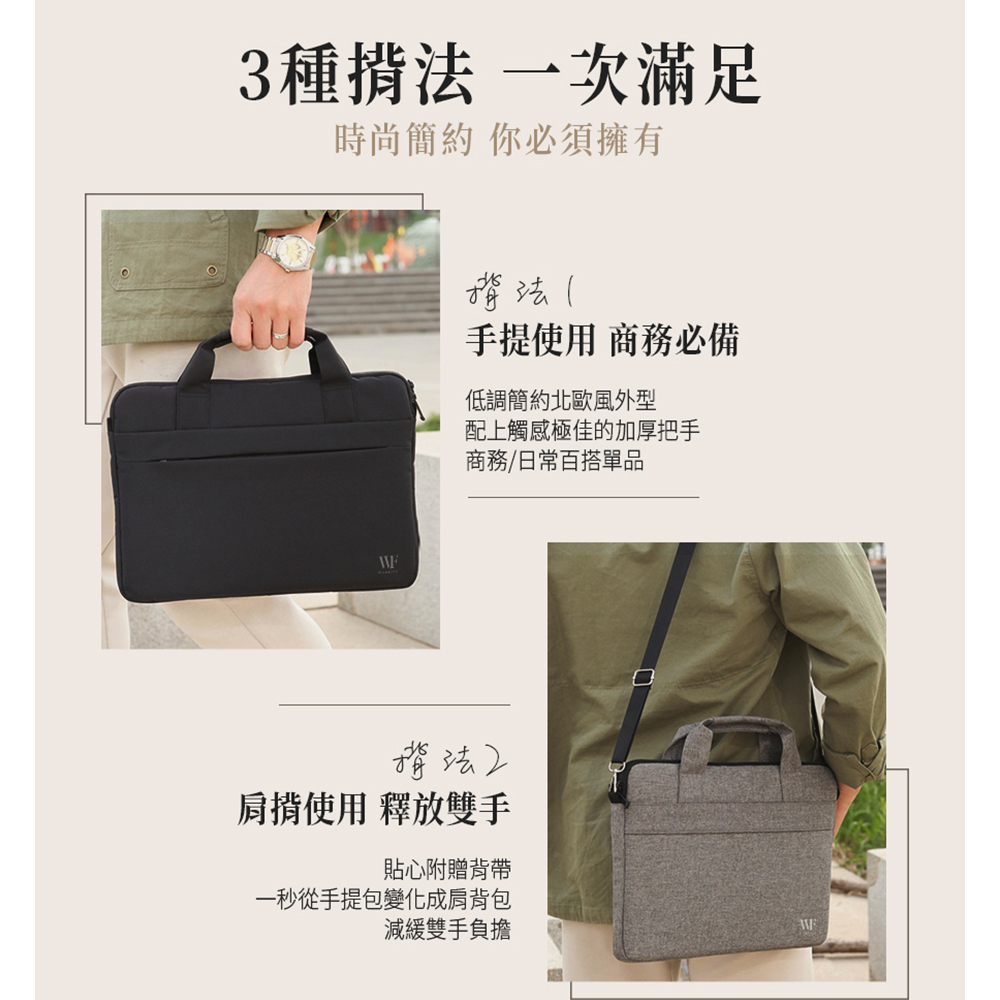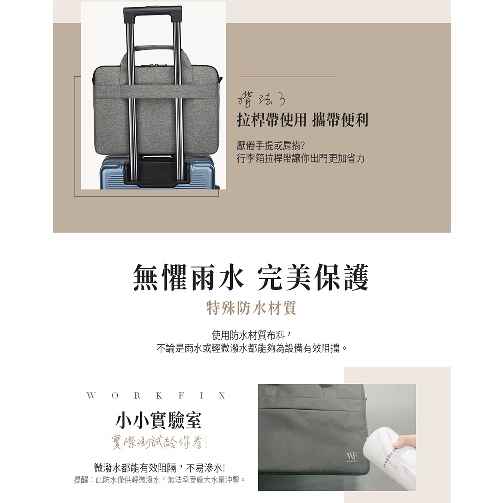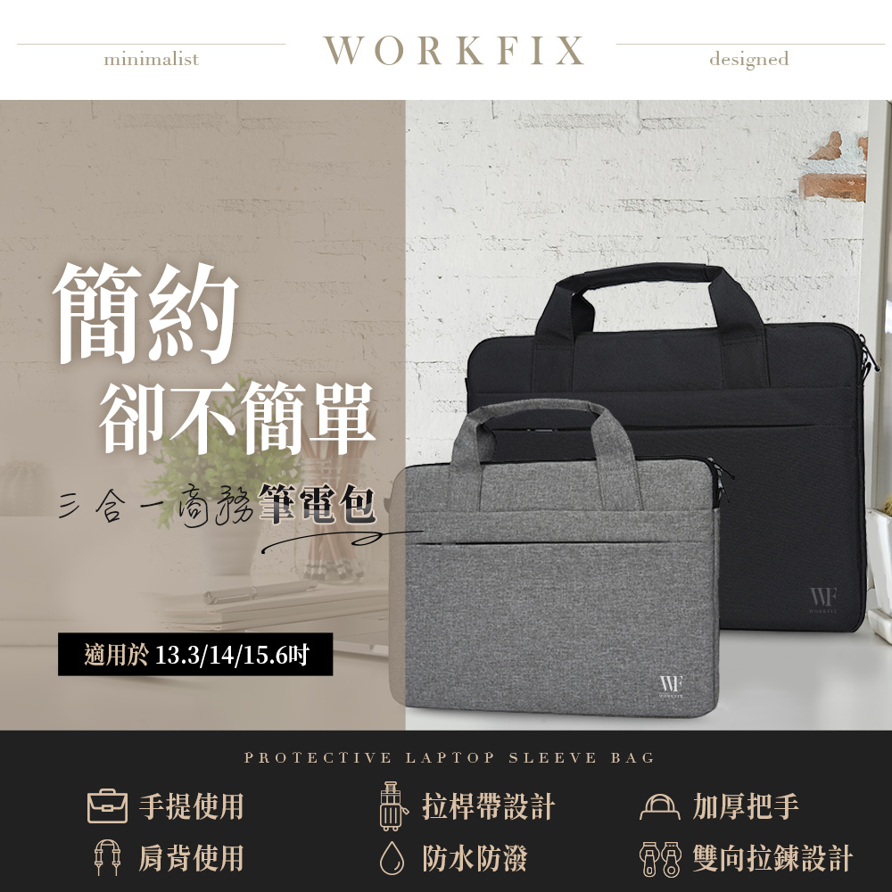 【WORKFIX 渥克斯】13.3吋/14吋/15.6吋輕巧手提斜背避震兩用筆電公事包