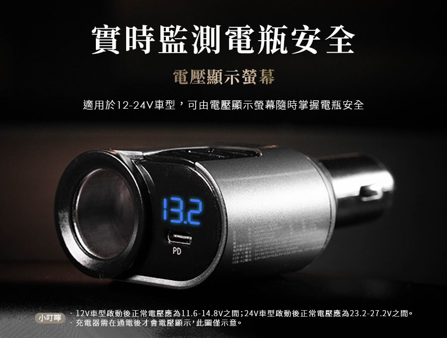 ●電壓智能顯示,即時監測一目了然,電瓶異常提早發覺