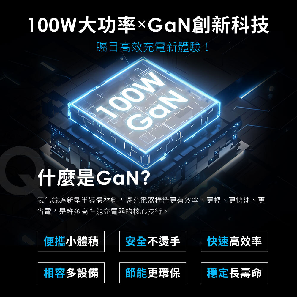1.GaN氮化鎵黑科技加持充電更快 附100W線