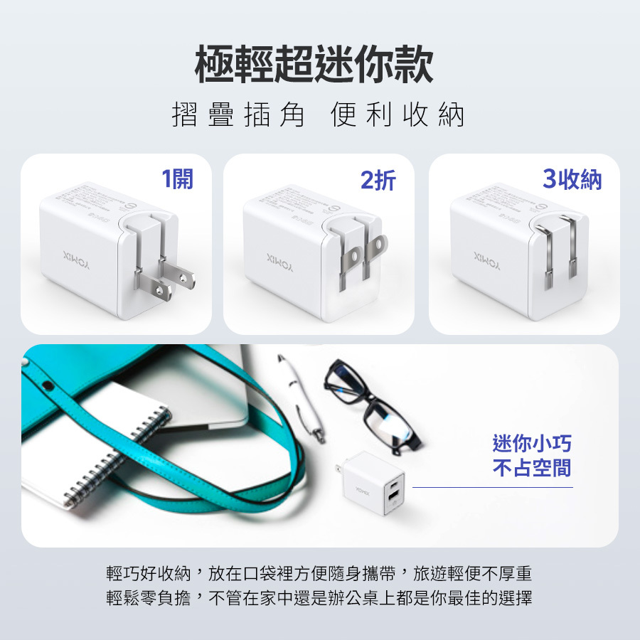18w雙孔迷你旅充,摺疊插角 便利收納,8項防護 安全高效,國際通用 變壓設機
