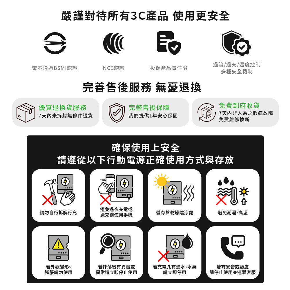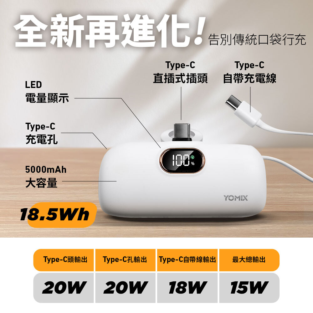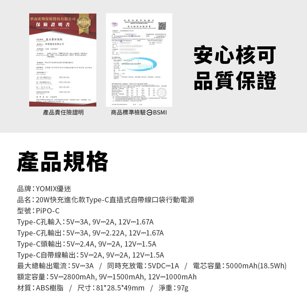 YOMIX 全系列行動電源皆已通過台灣 BSMI 安全認證,並依規定標示 Wh(瓦時)規格。