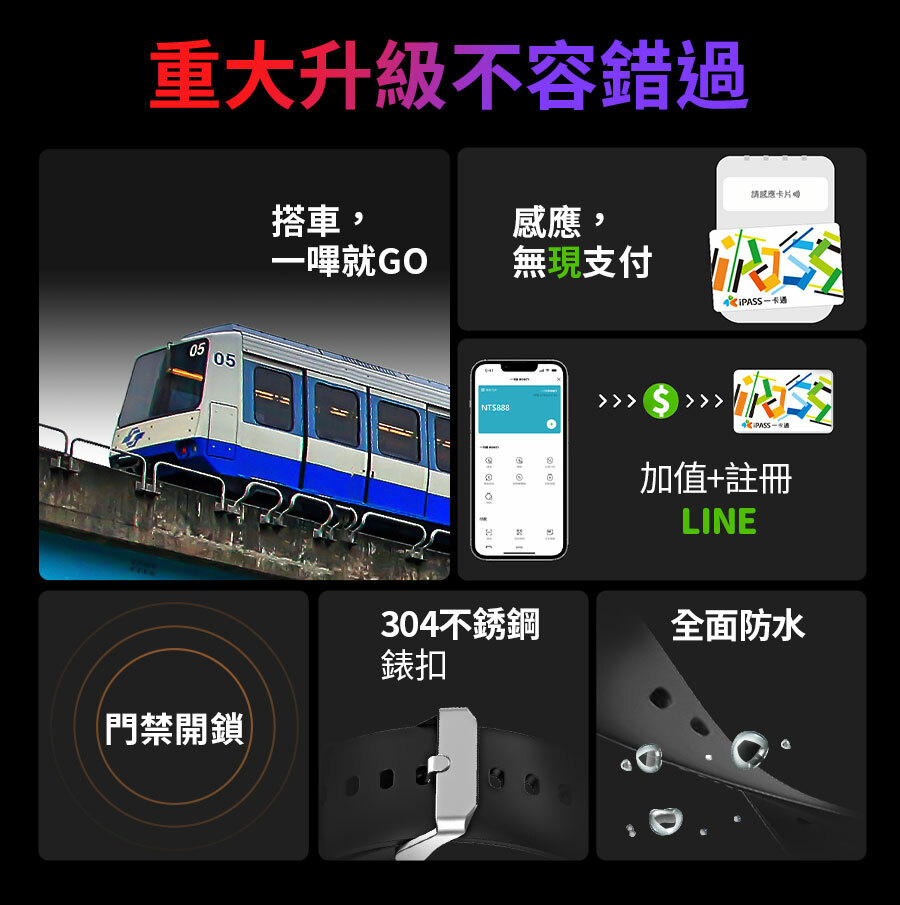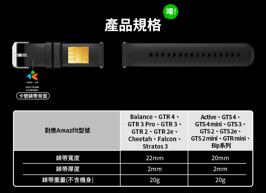 【YOMIX 優迷】Amazfit華米 IPASS一卡通官方授權防水防汗無毒親膚矽膠支付門卡多用途錶帶