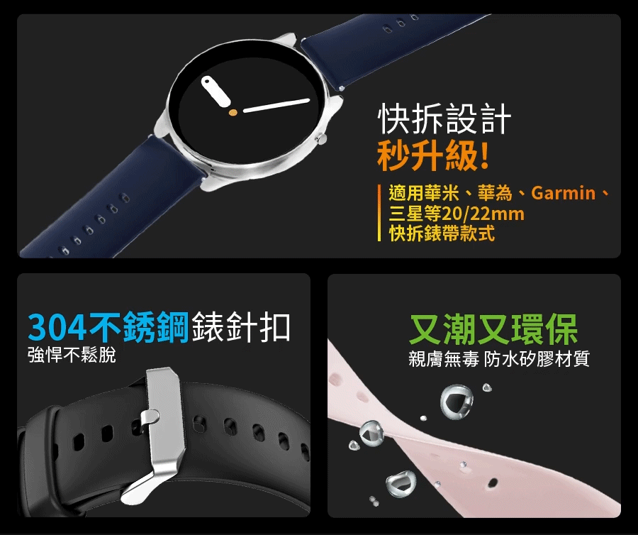 適用華米全系列:GT4、3、2系列、T-Rex 系列、Bip系列(不包含Band手環系列) / 小尋A1手錶 / 海威特M9024手錶