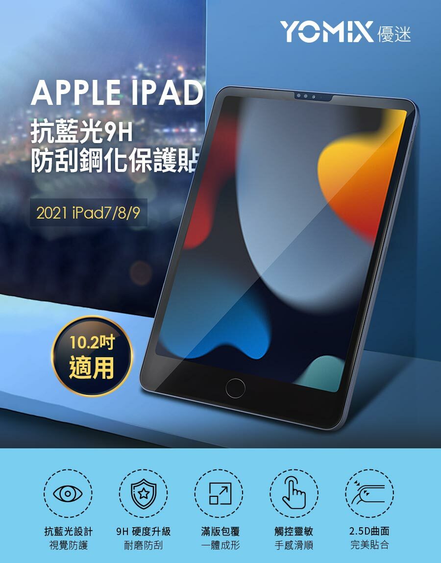 【YOMIX優迷】Apple iPad 10.2吋抗藍光9H防刮全屏鋼化保護貼(耐磨防刮/滿版全屏)