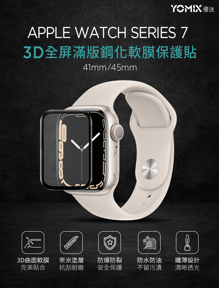 【YOMIX優迷】Apple Watch Series 7 41/45mm 3D全屏滿版鋼化螢幕保護貼-41mm