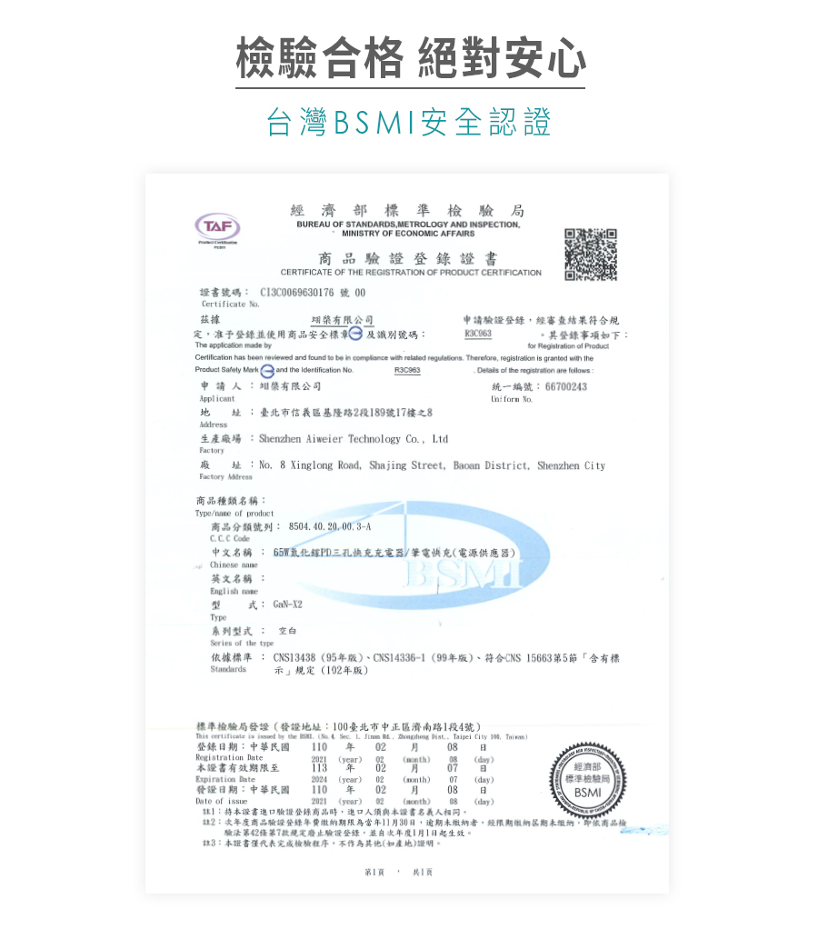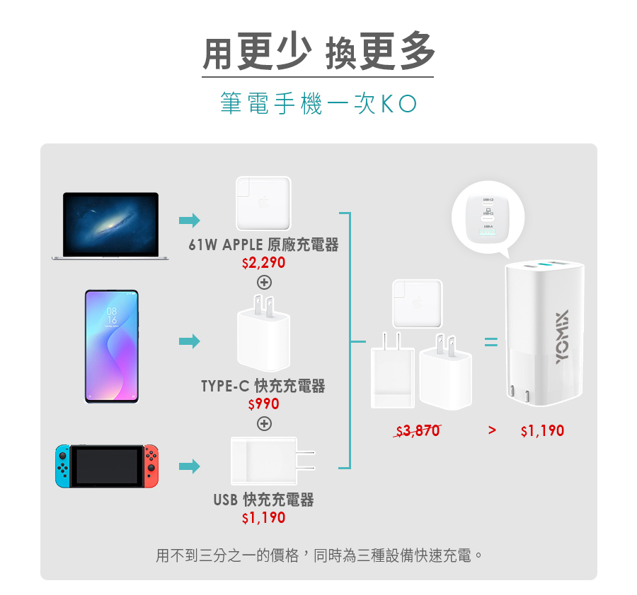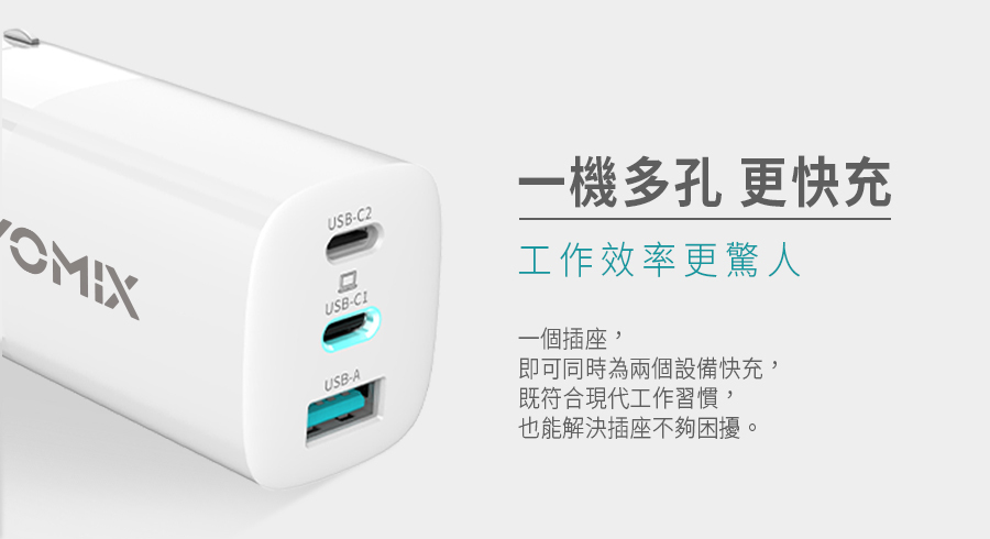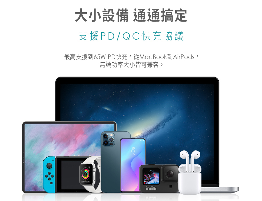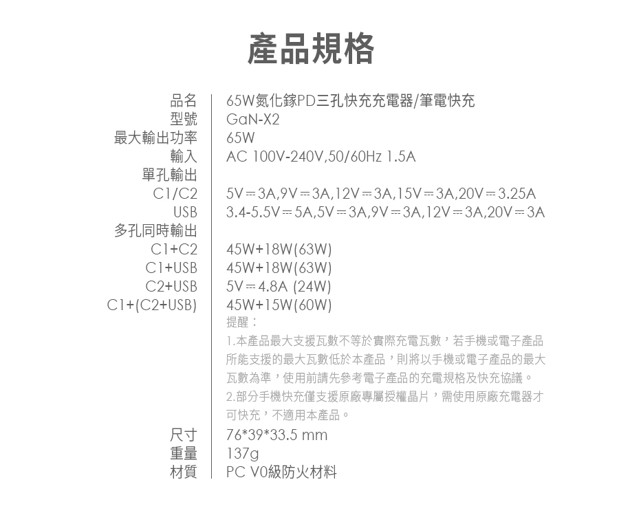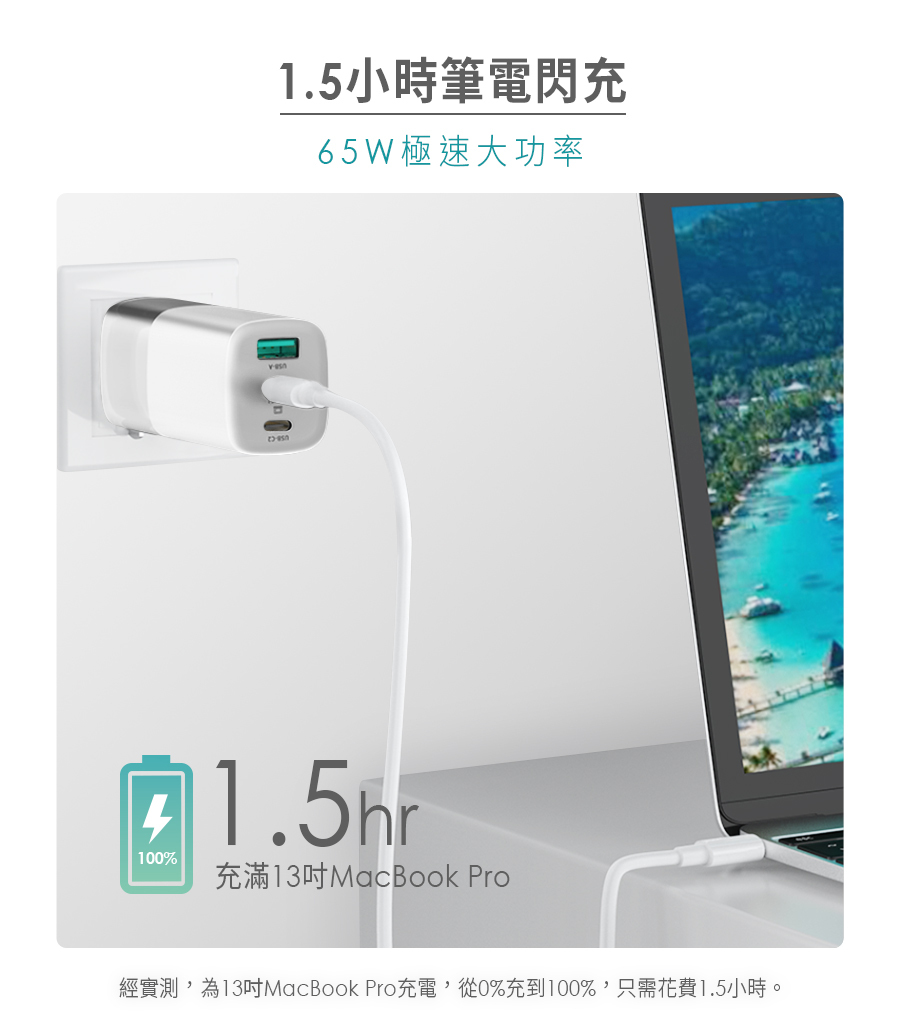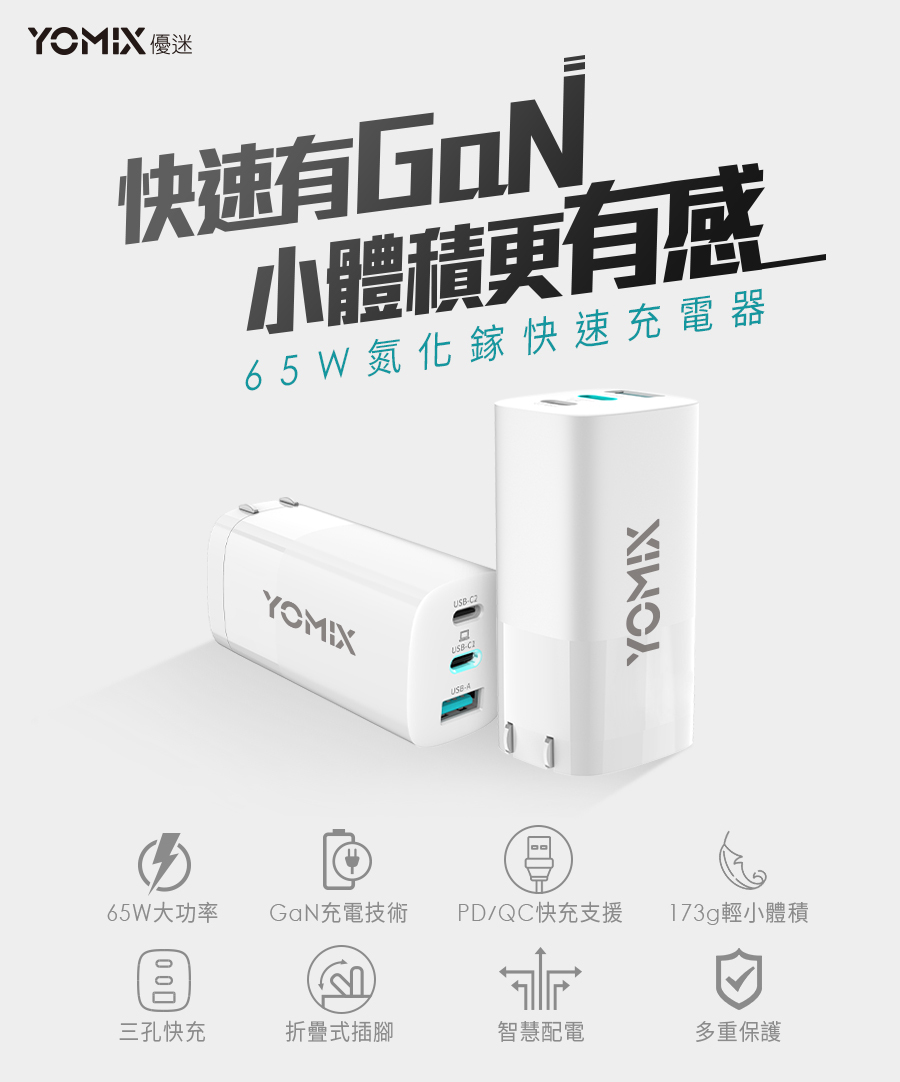 最強GaN 極速輕小,黑科技 氮化鎵GaN,65W小體積 大功率,三孔快充 智慧分流