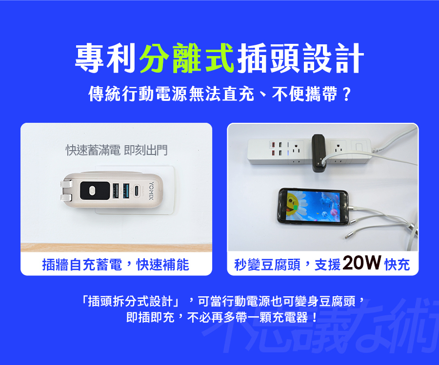 ●新奇: 可分離充電頭+行動電源