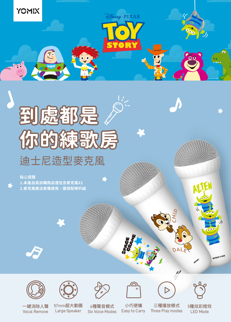 【YOMIX優迷】迪士尼官方限量隨身行動卡拉OK消人聲無線麥克風