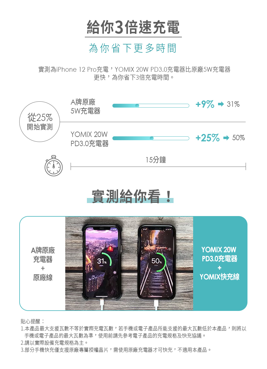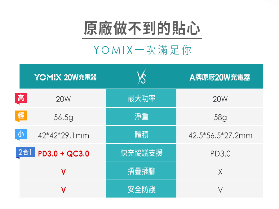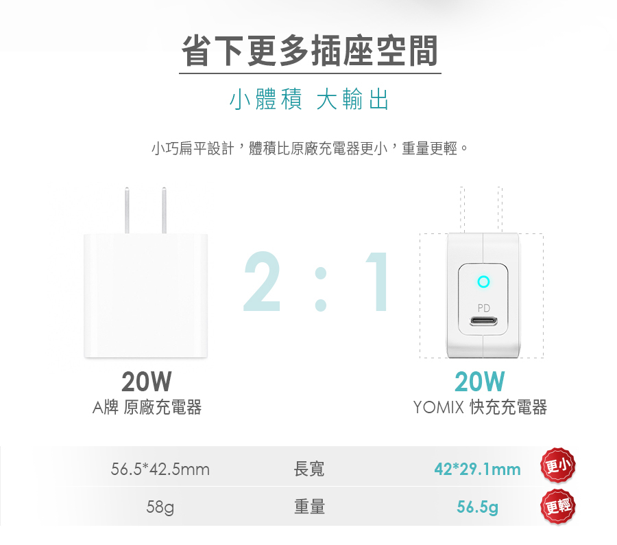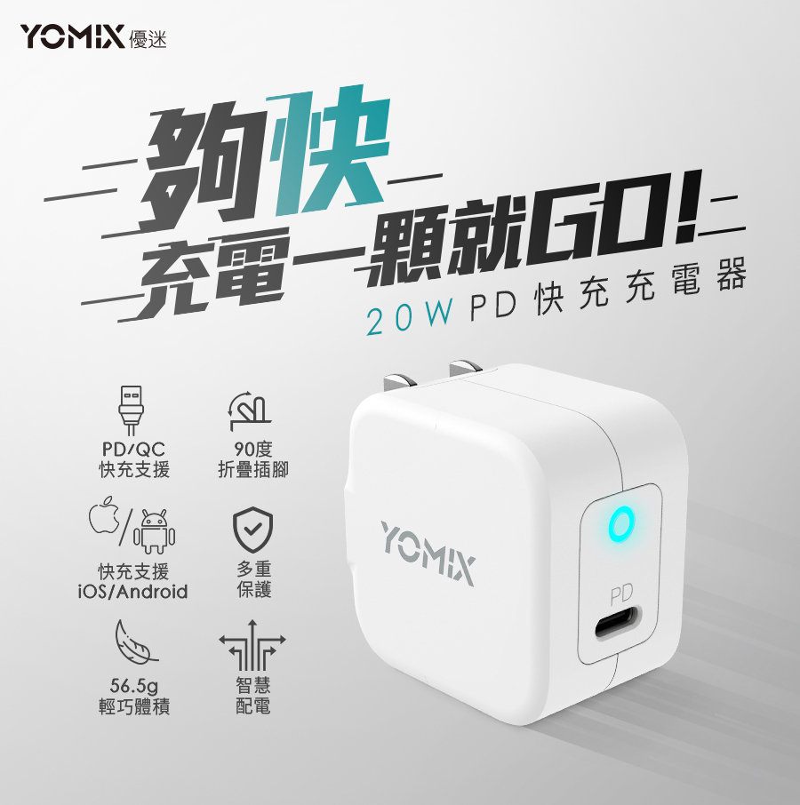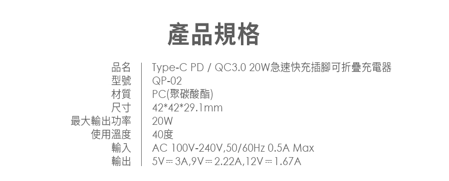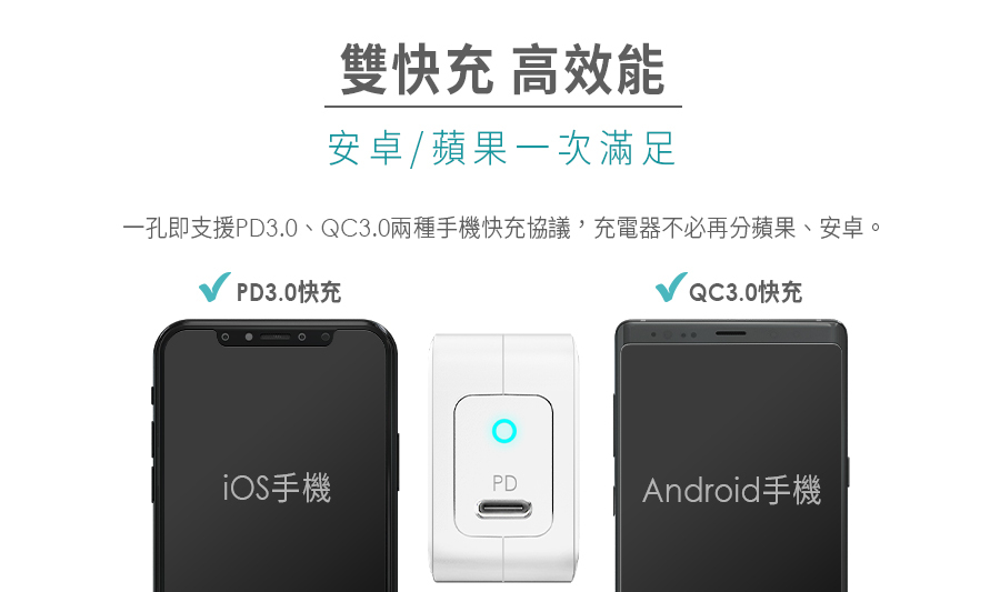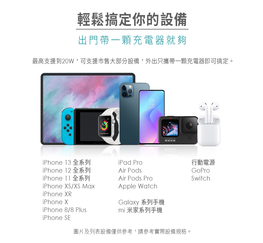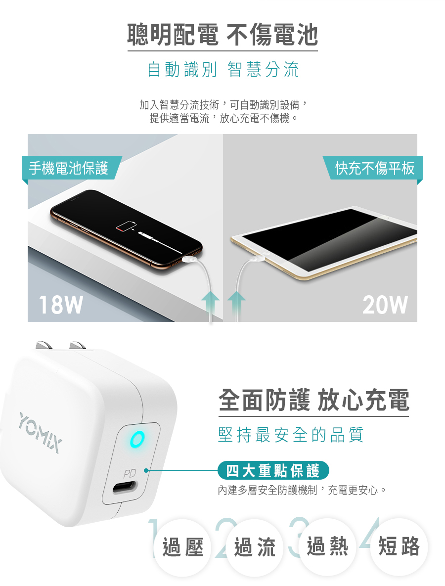 極輕高效 外出快充必備,20W小體積 大輸出,一孔雙快充協議,4大防護 安心充電