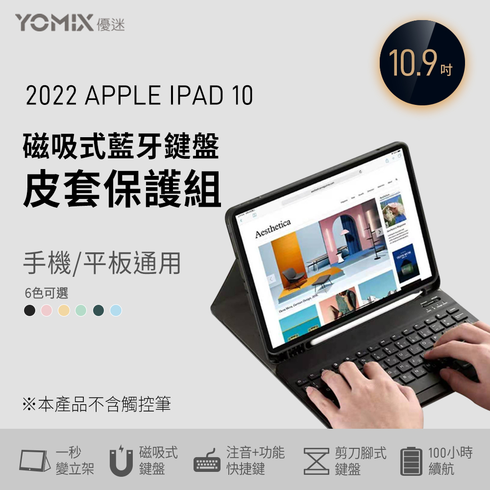 【YOMIX 優迷】Apple iPad 2022 10.9吋 磁吸藍牙鍵盤皮式套保護組(iPad 10)-黑色